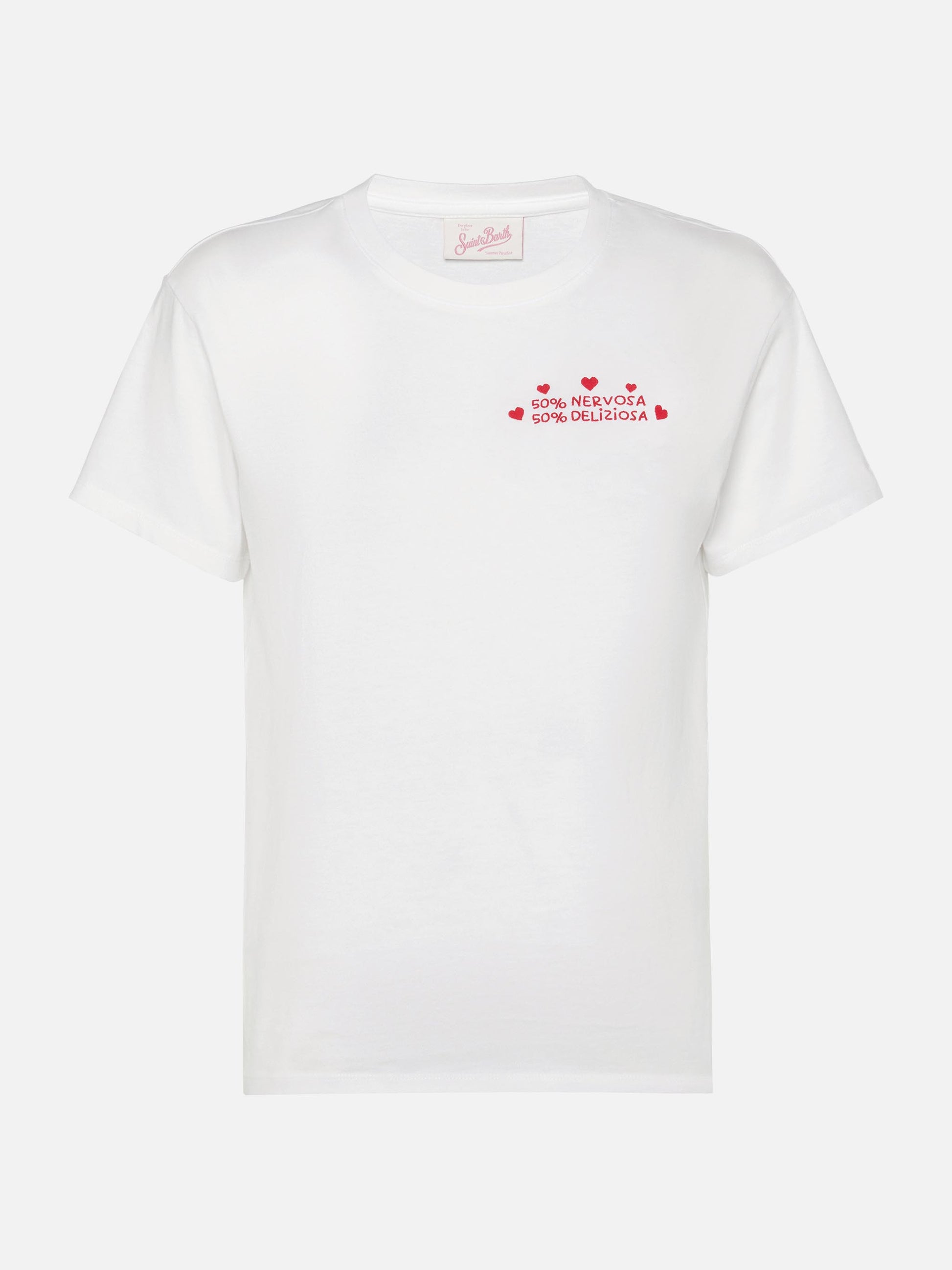 T-shirt Emilie in cotone con ricamo 50 nervosa 50 deliziosa