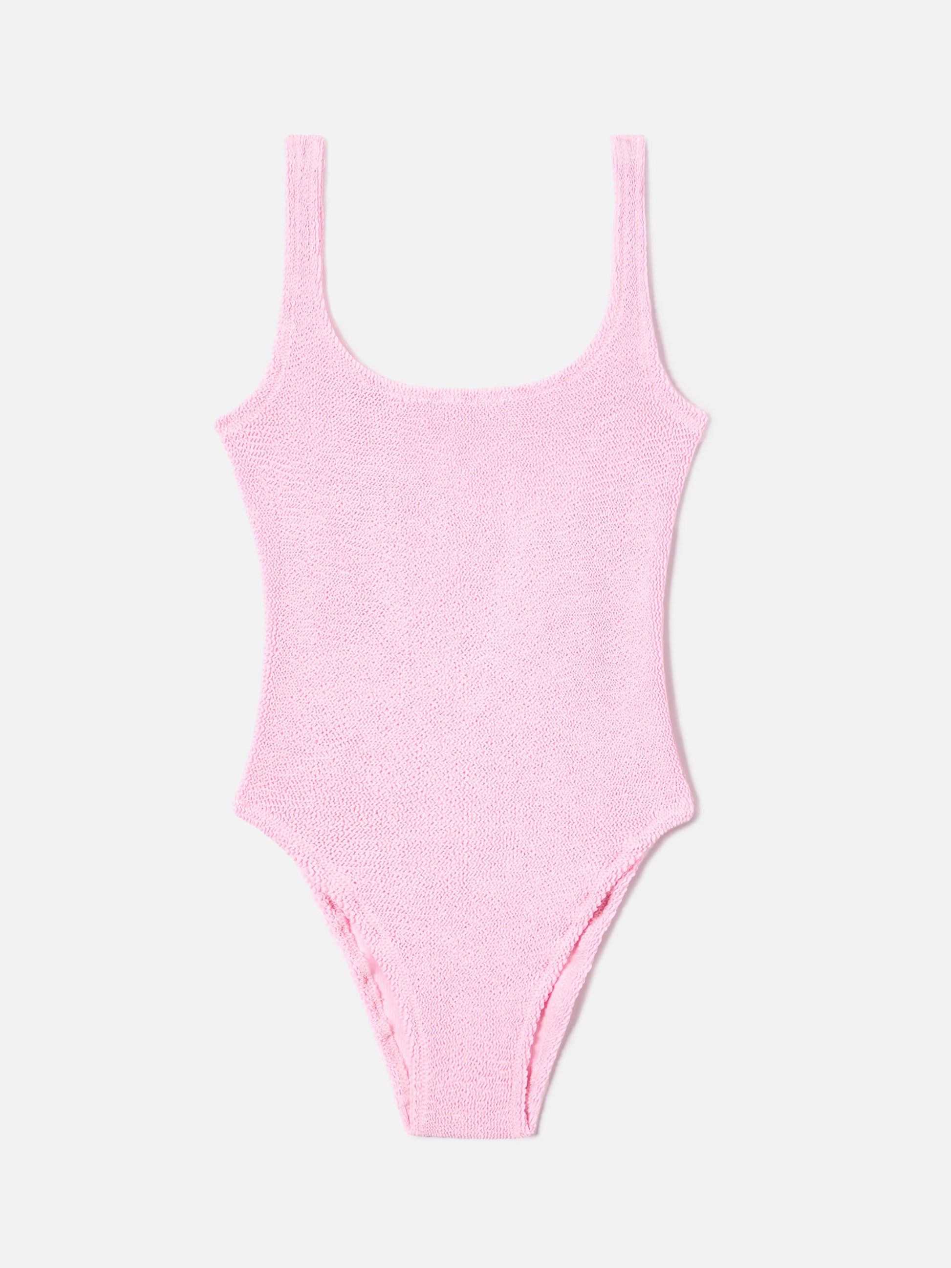 Costume intero Lora in tessuto crinkle rosa tinta unita