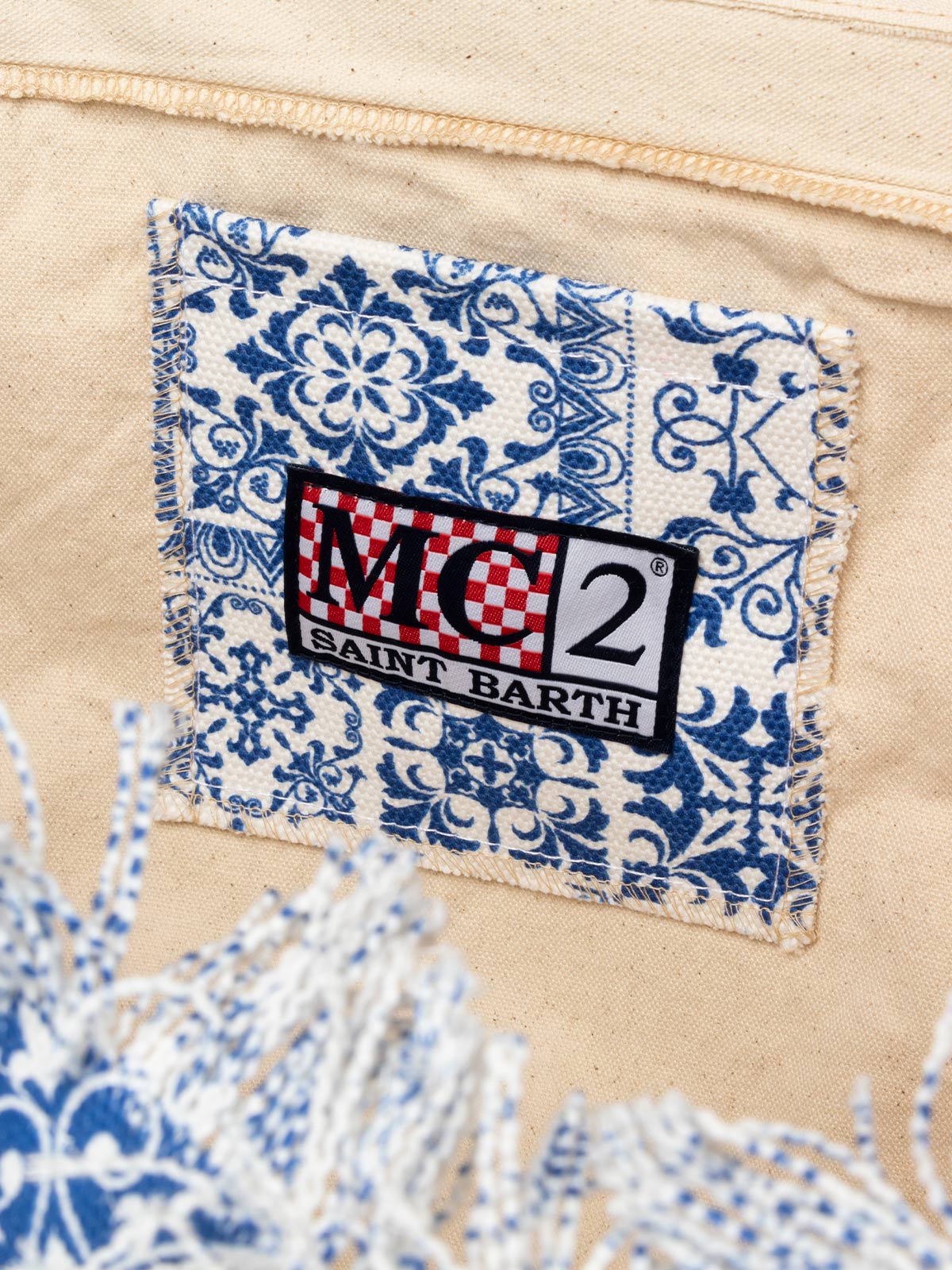 Borsa tote Vanity in tela di cotone con patch maioliche