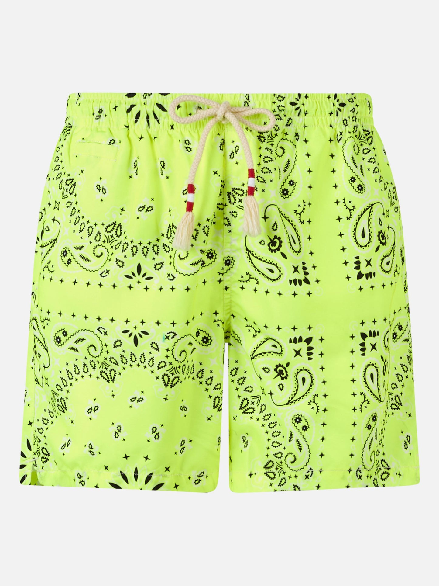 Costume da bagno da uomo con stampa bandana giallo fluo
