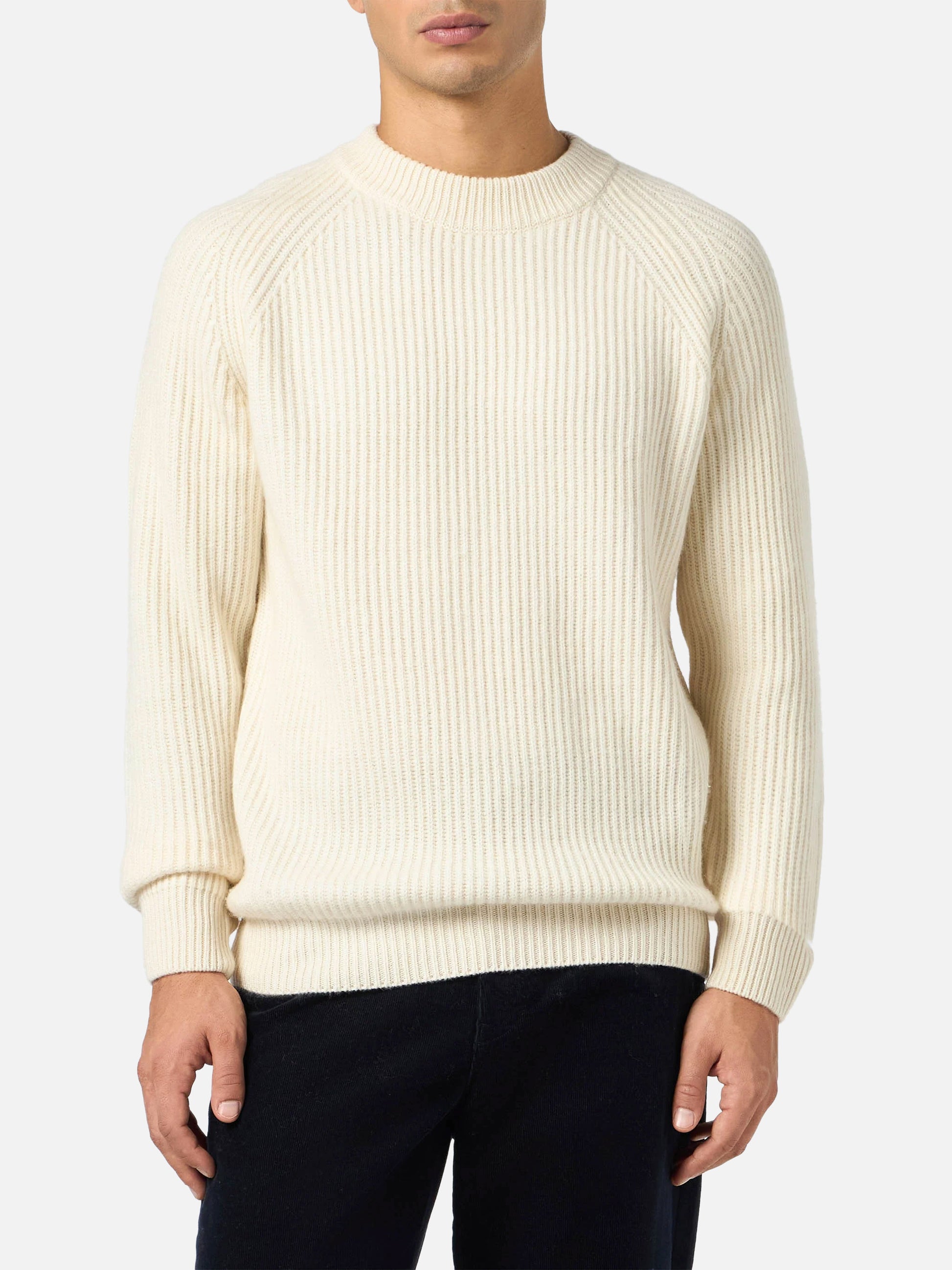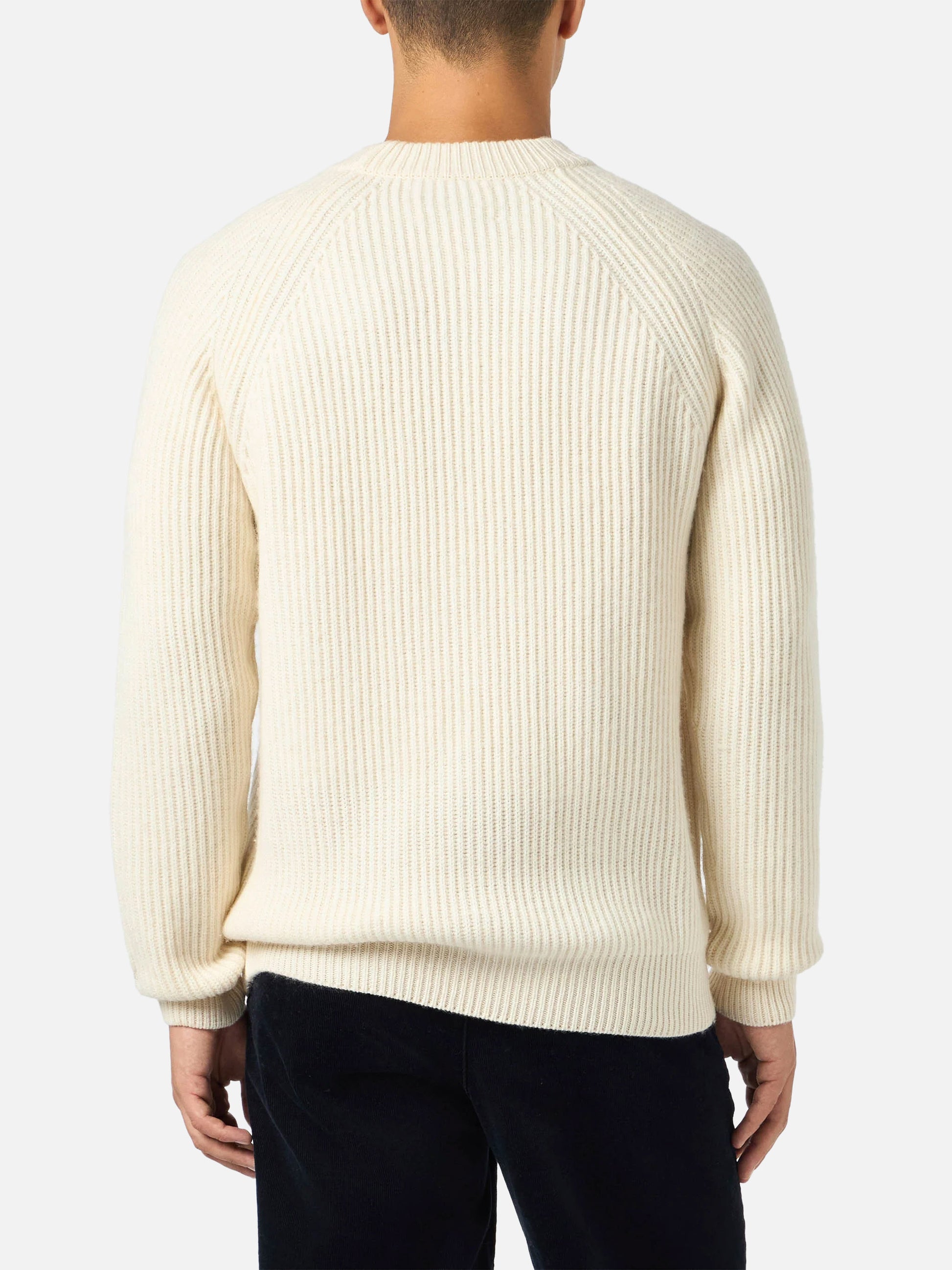 Maglione bianco a coste Marine in MISTO CASHMERE