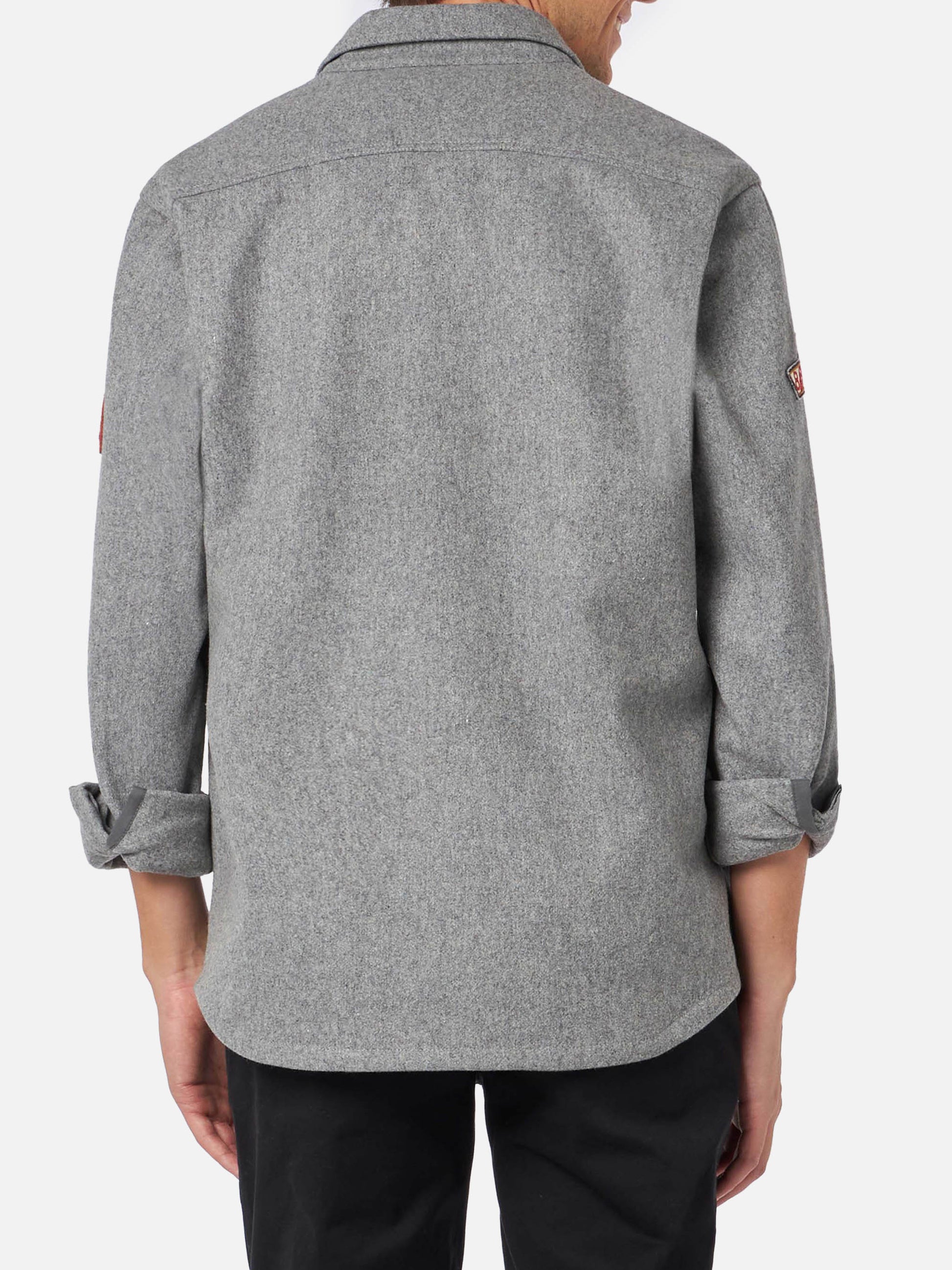 Camicia da uomo in lana grigia con tasche e toppe