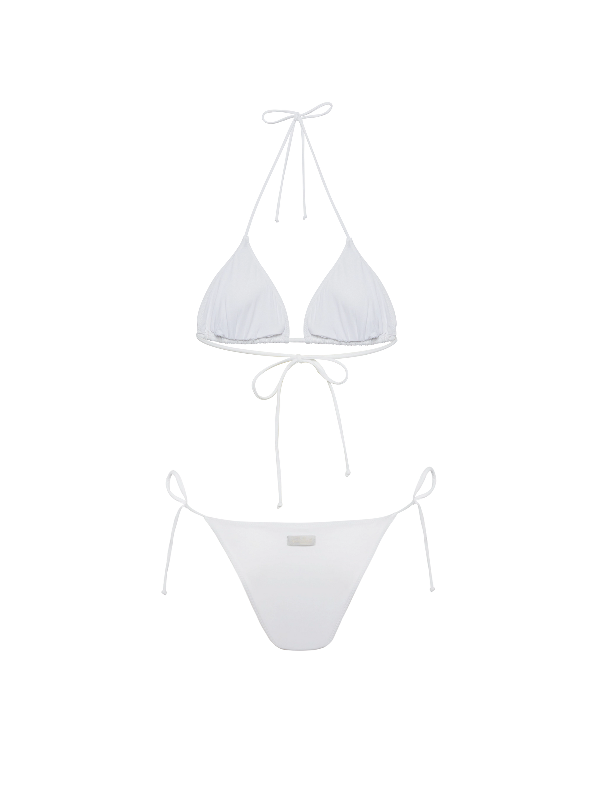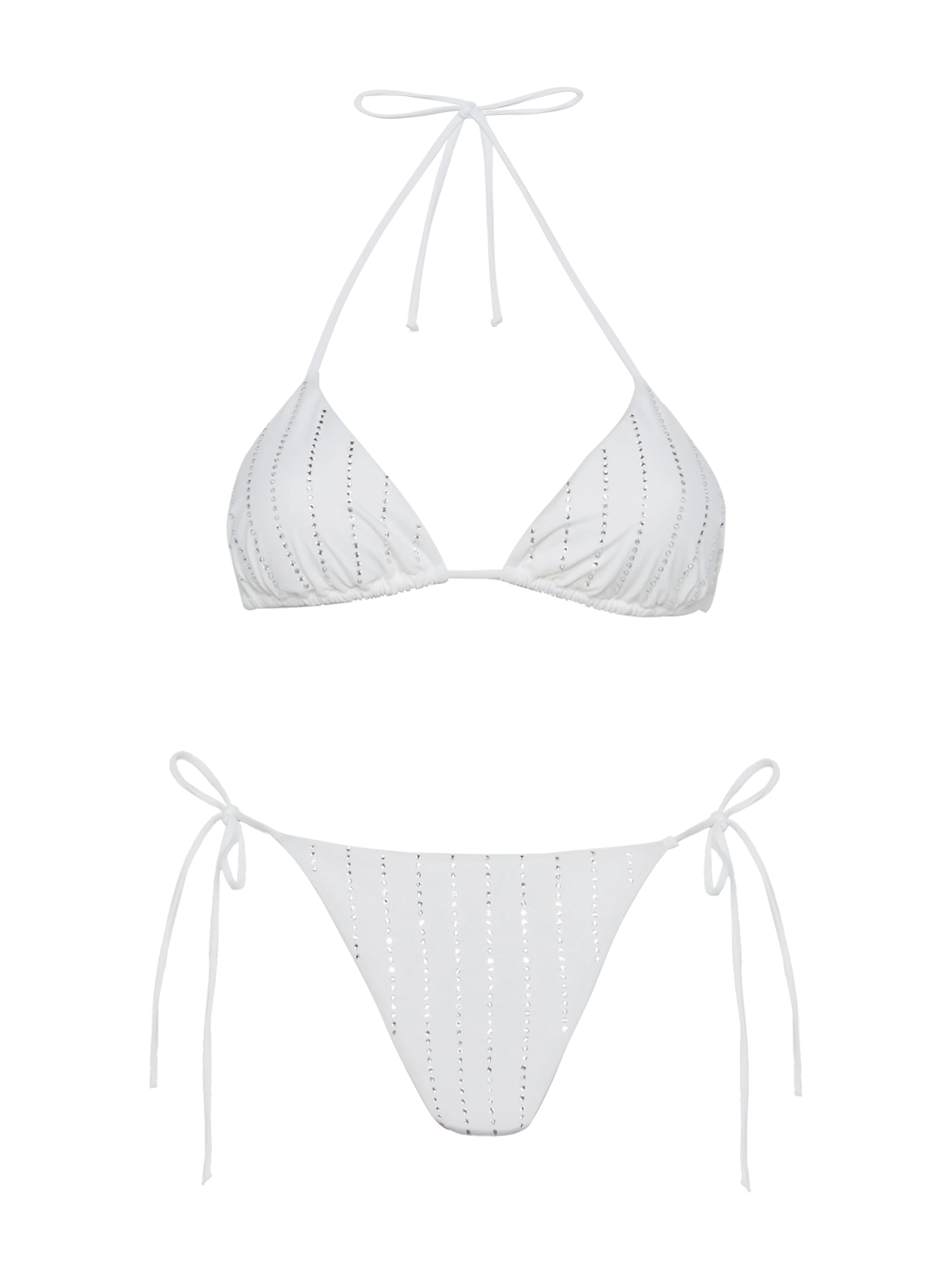 Bikini bianco classico a triangolo Leah Marielle con decorazione a righe in strass