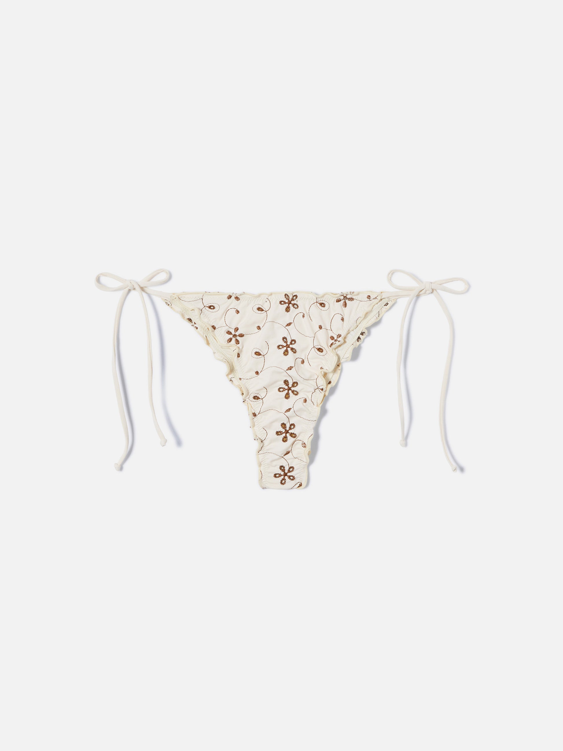 Slip mare Miami modello brasiliana in sangallo panna con ricamo a contrasto