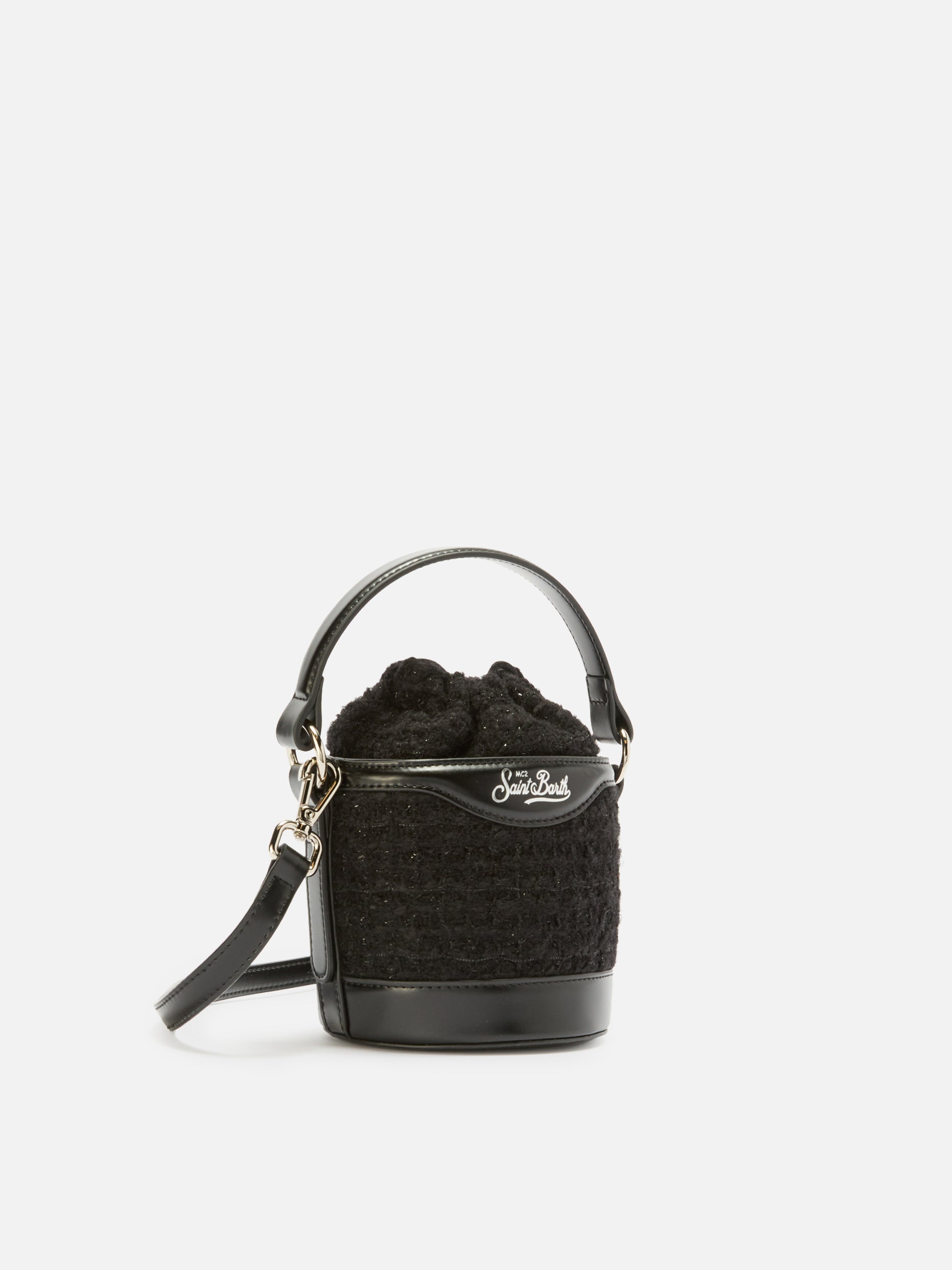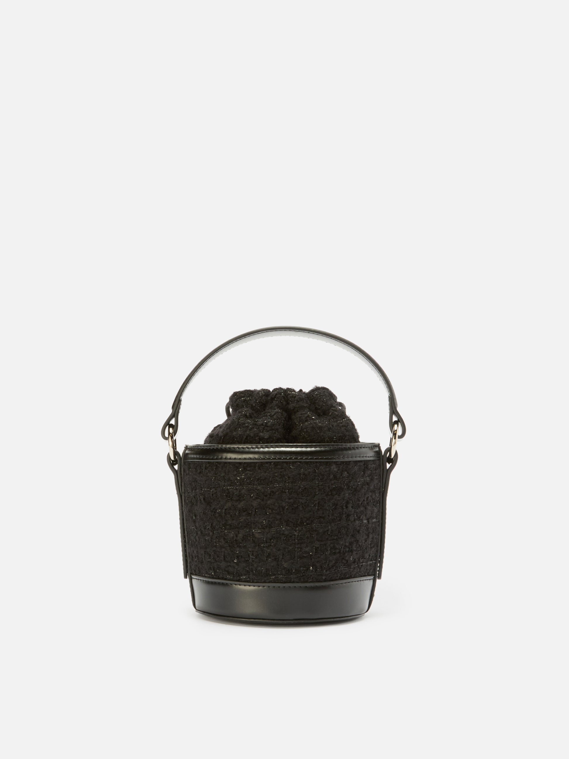 Borsa a secchiello Mila Tweed in misto lana tweed nero