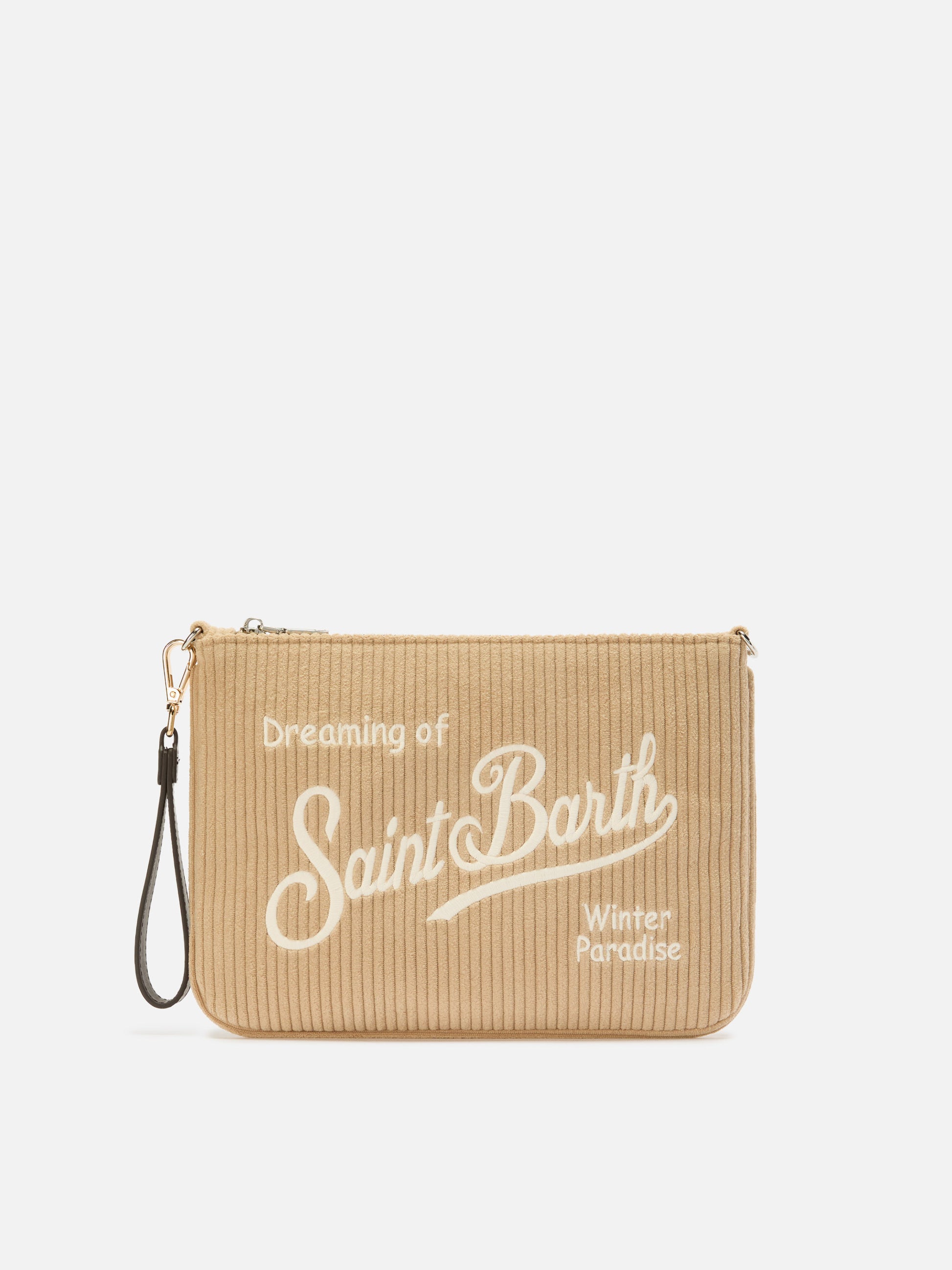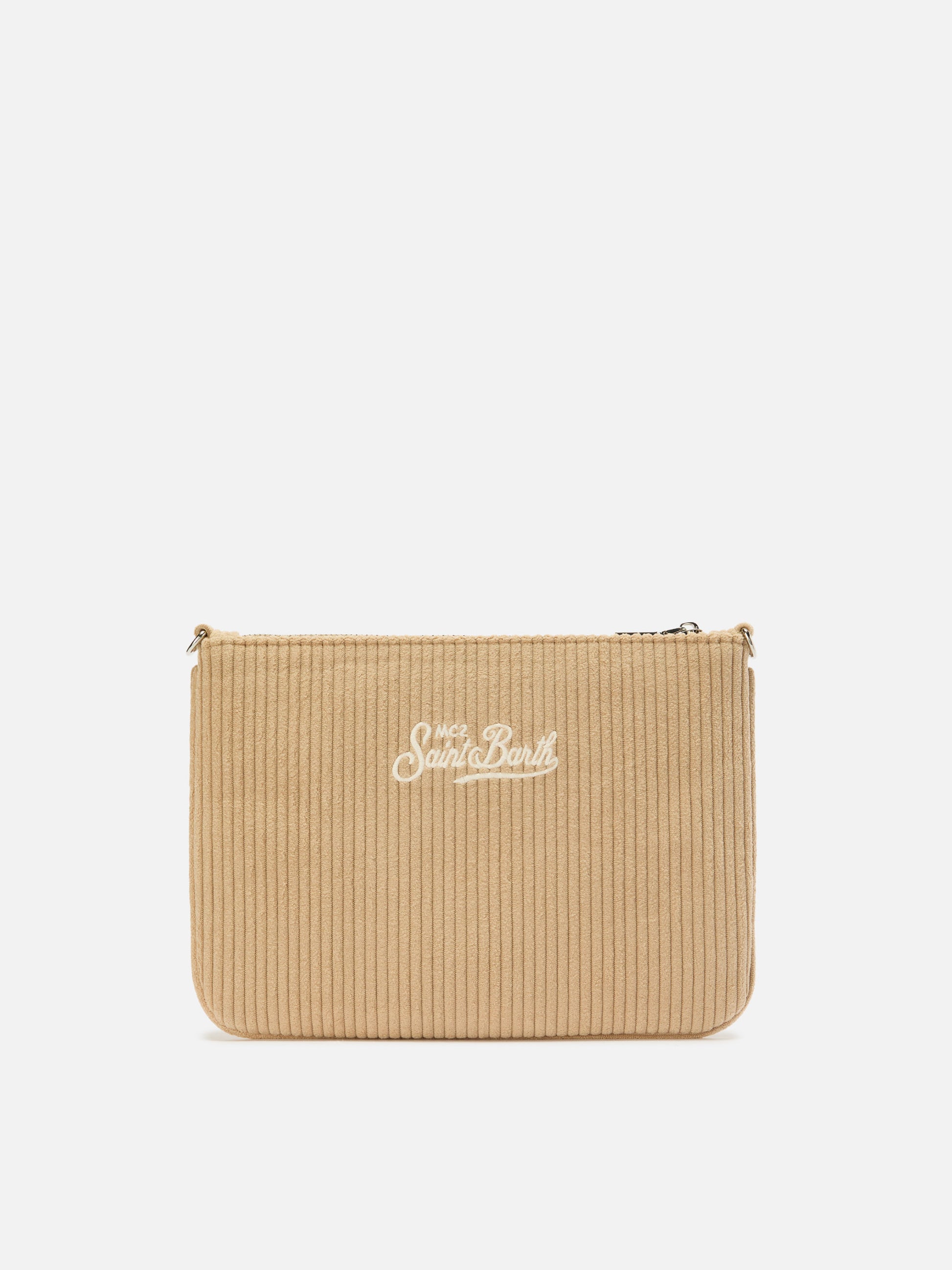 Borsa crossbody Parisienne Corduroy in velluto a coste beige
