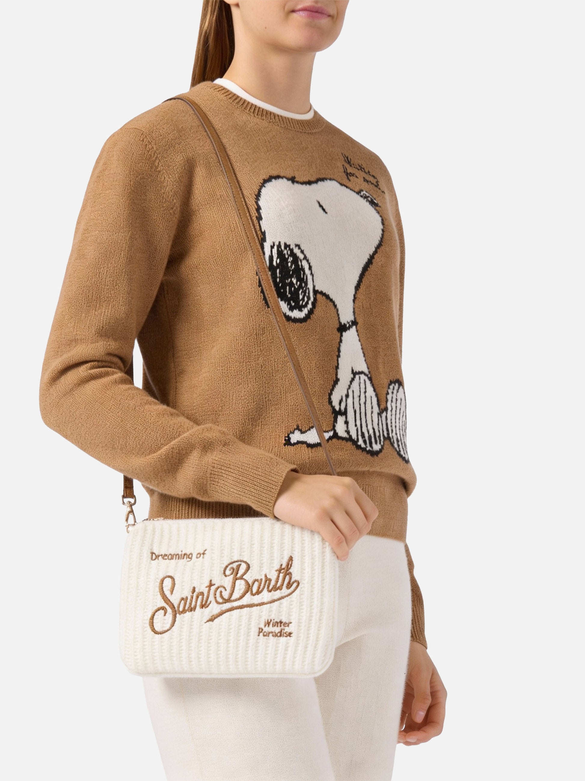 Borsa crossbody Parisienne Wool Rib in misto lana a coste bianca