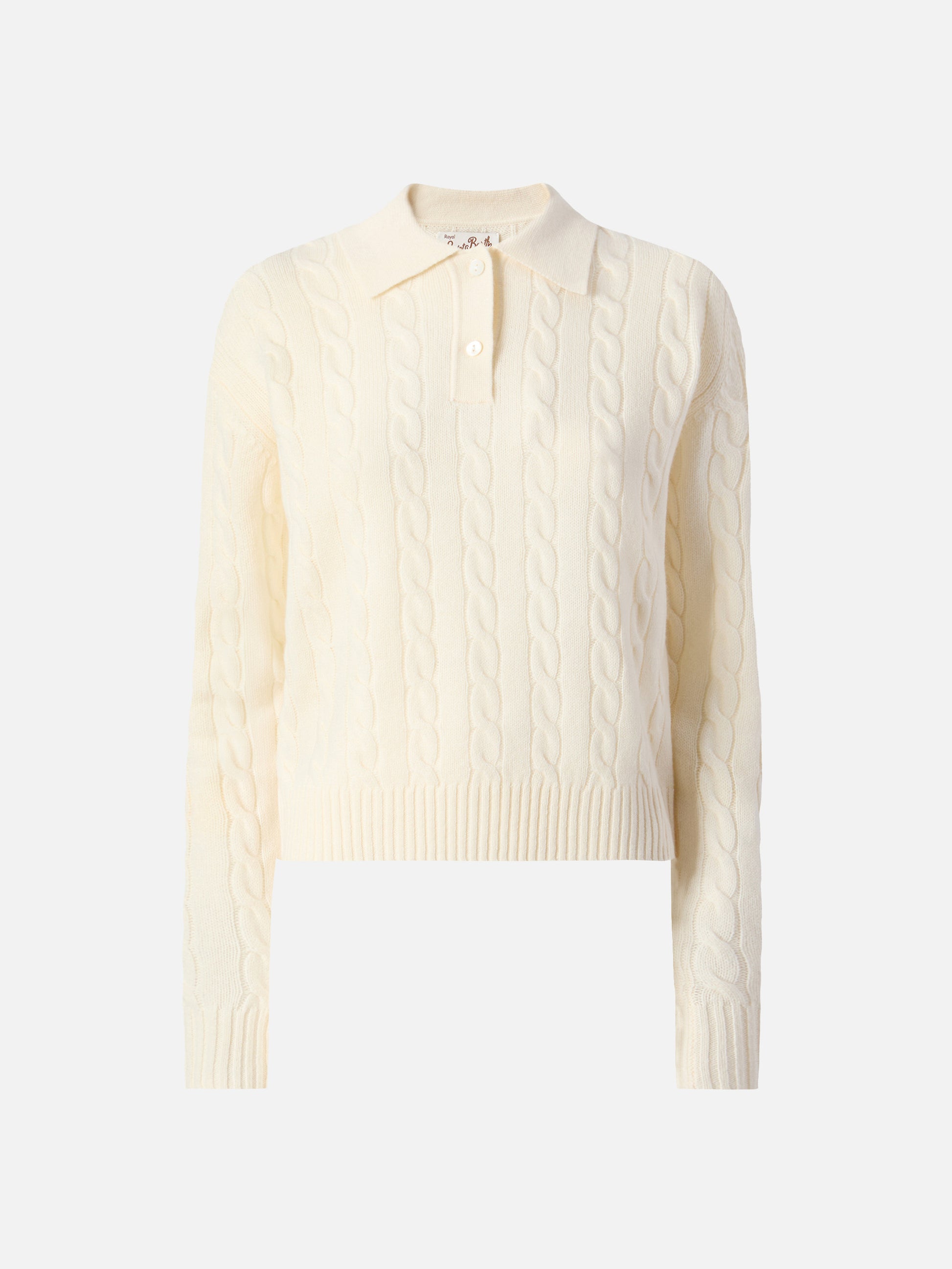Maglione polo a trecce soft touch Savoy in lana merino bianca