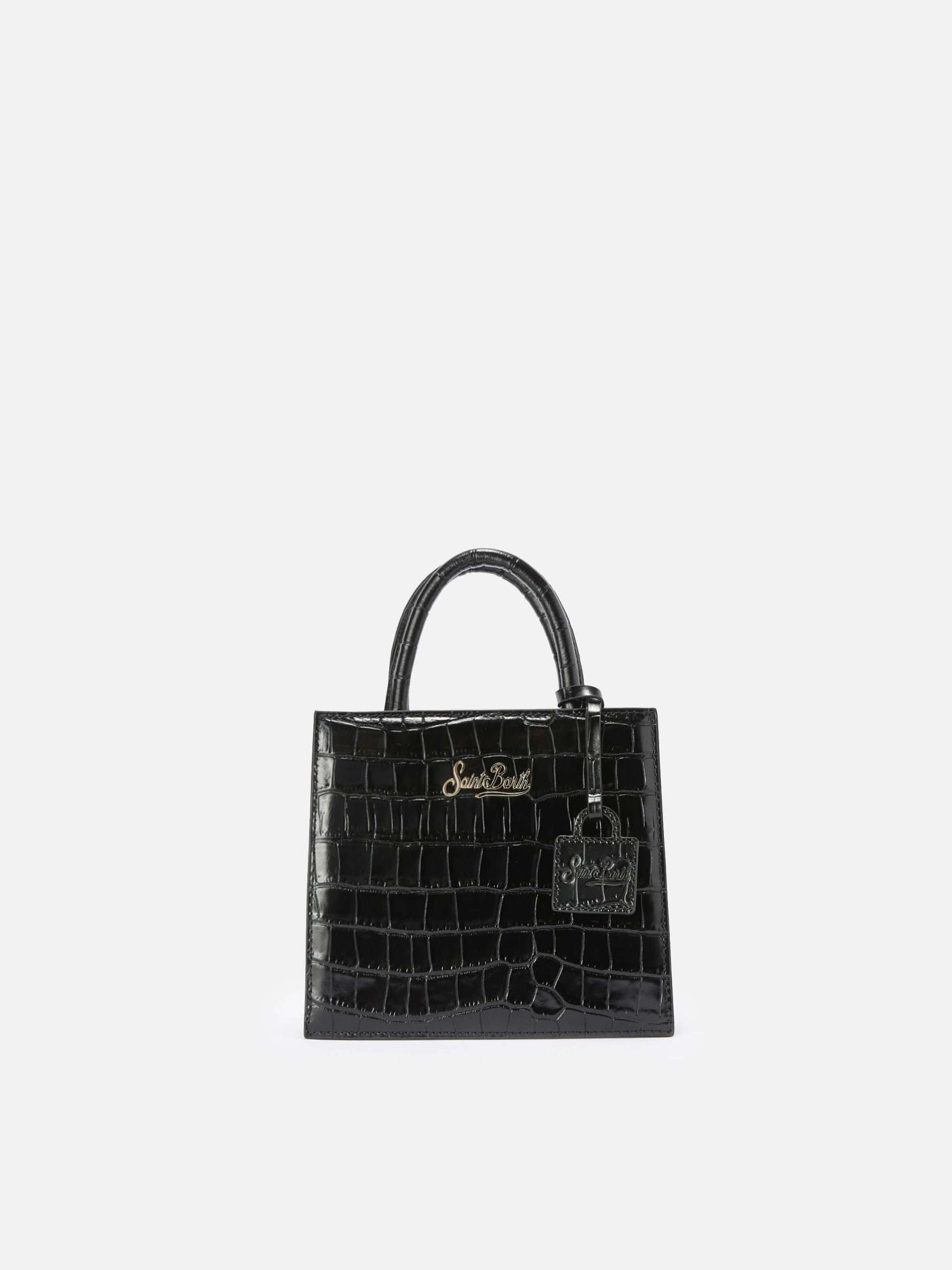 Borsa a mano Shop Bag Mini in pelle stampa cocco nera