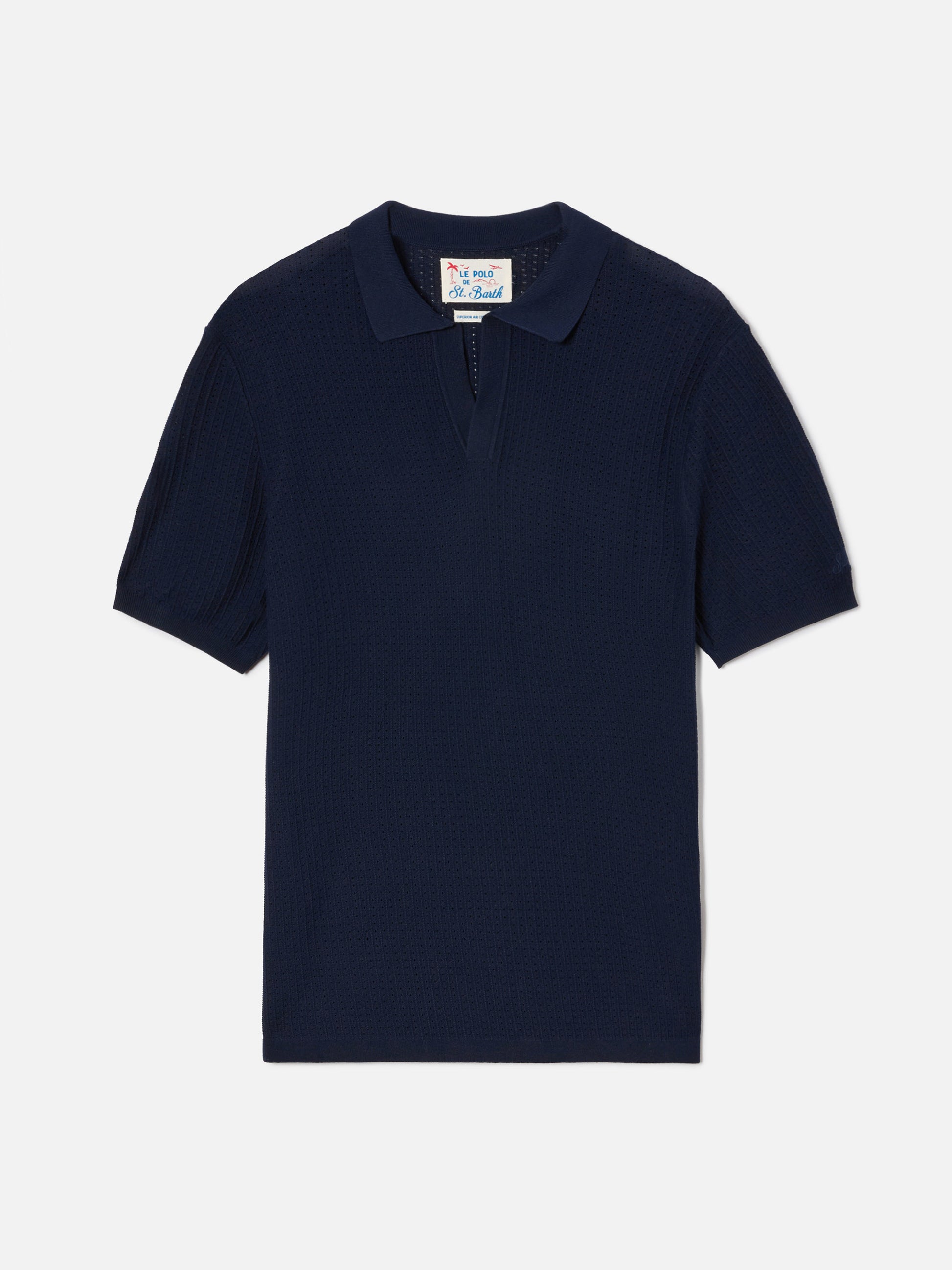 Polo Sloan Net in cotone pregiato high twist blu