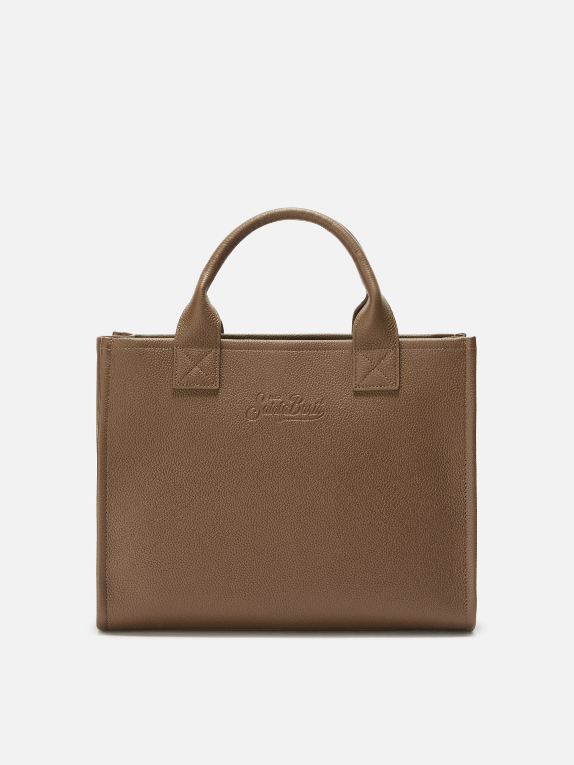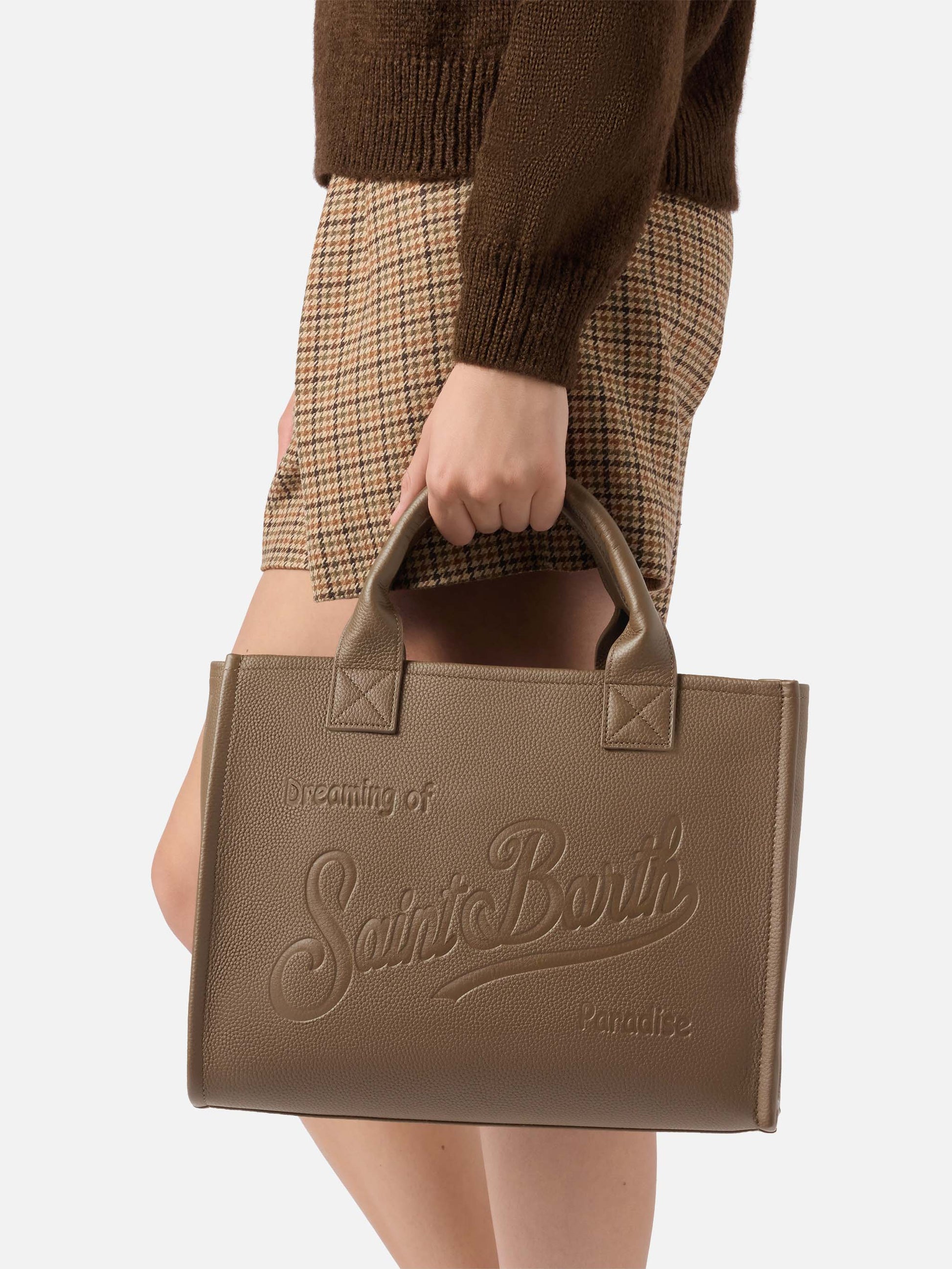 Borsa a spalla Vanity Bag Large in pelle martellata marrone