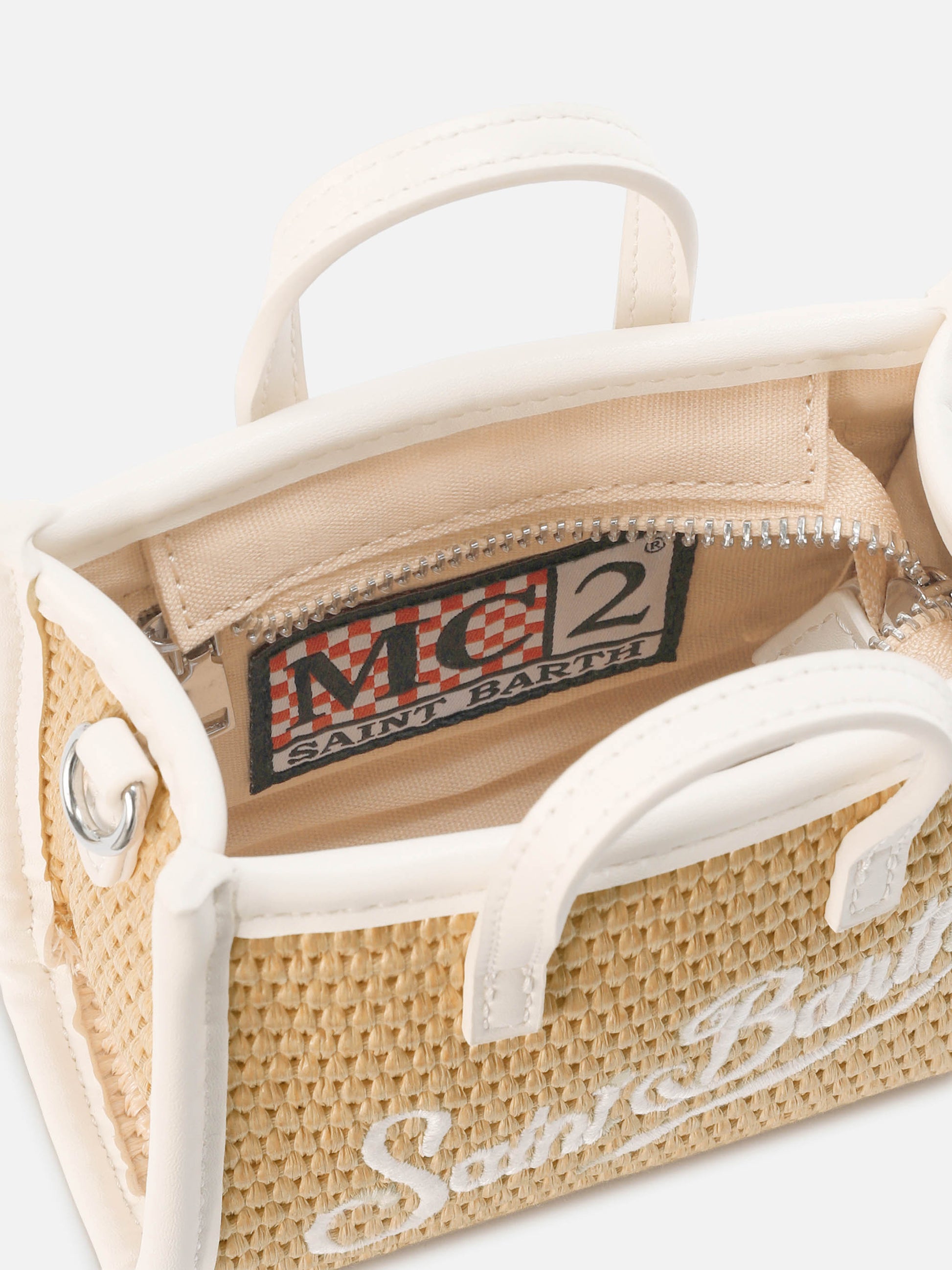 Borsa Vivian micro effetto paglia con logo bianco ricamato