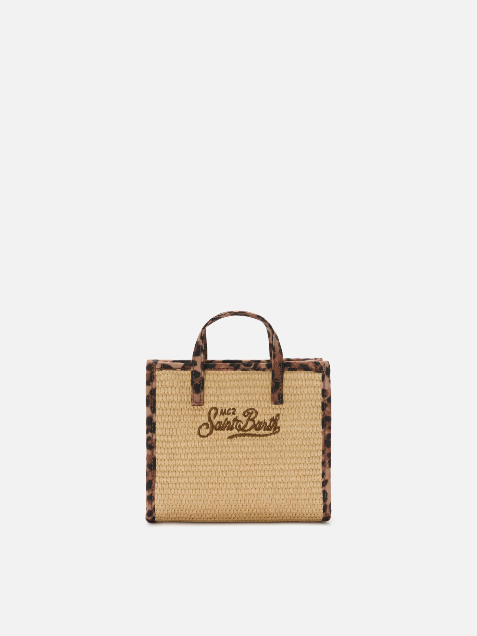 Borsa Vivian mini in tessuto effetto paglia con profili leopardati