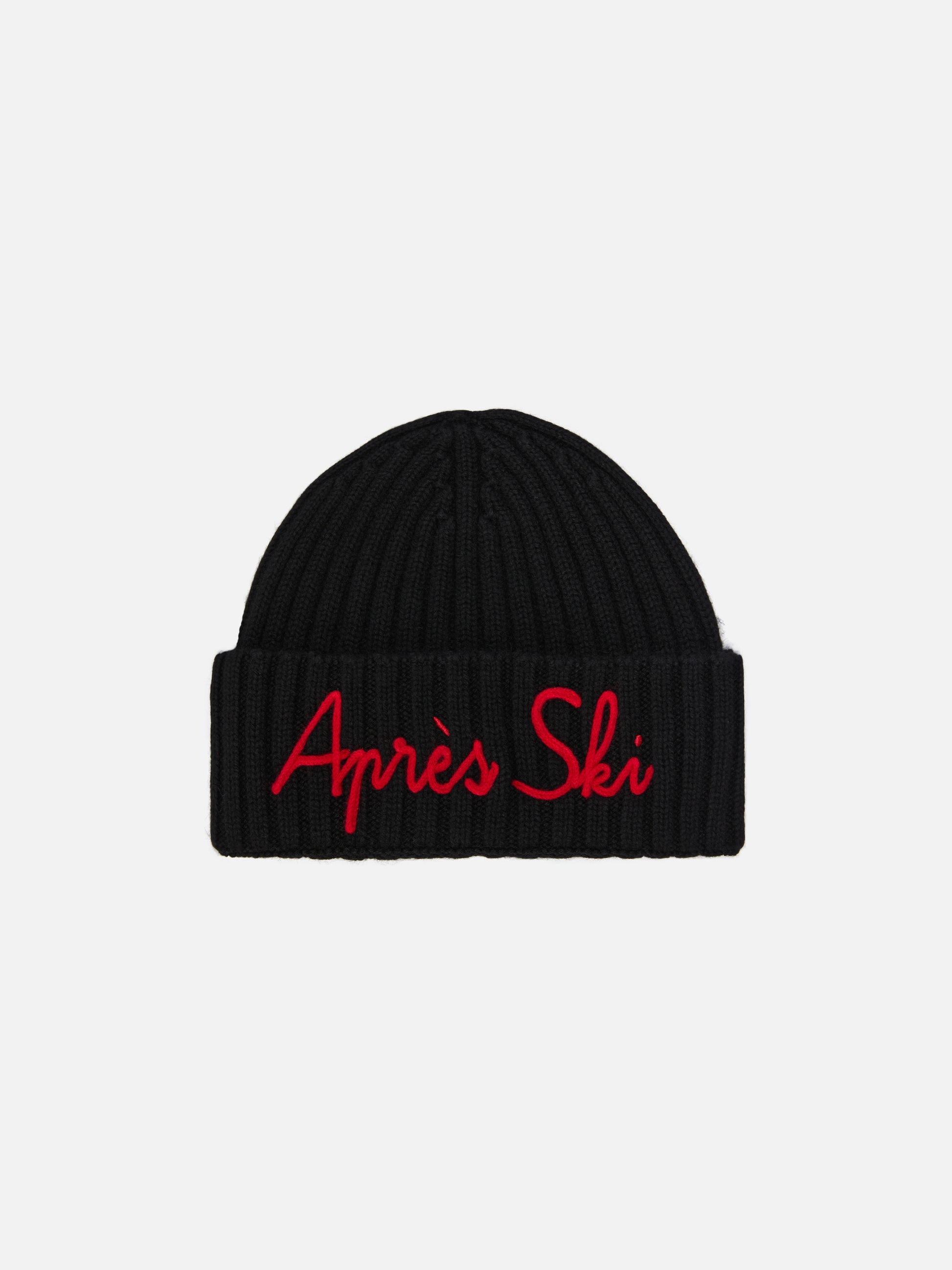 Berretto Wengen in misto cashmere nero con ricamo Apres Ski
