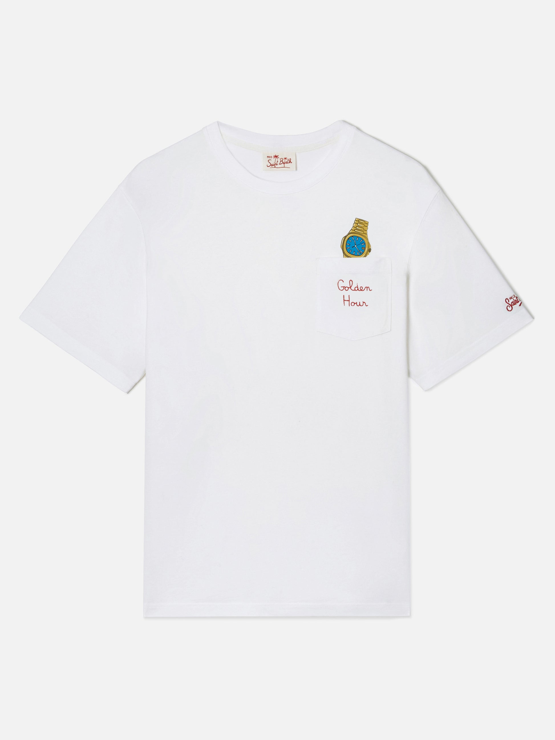 T-shirt Austin bianca con orologio e ricamo Golden Hour