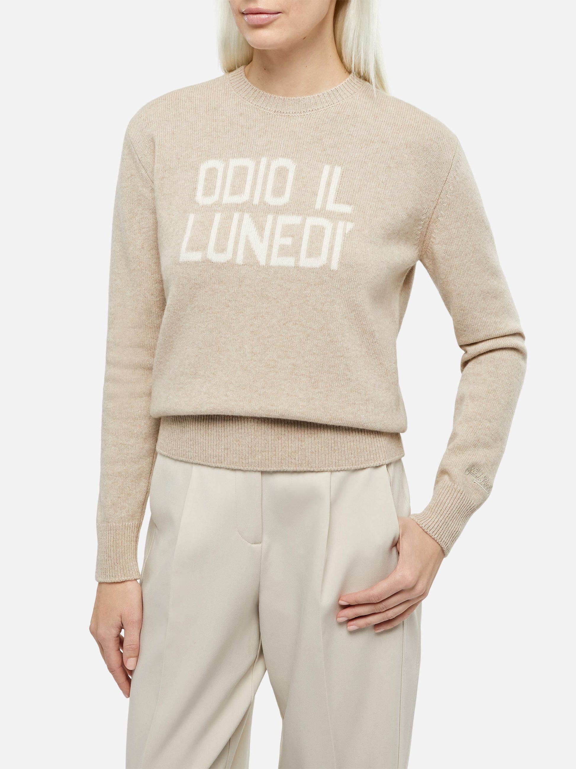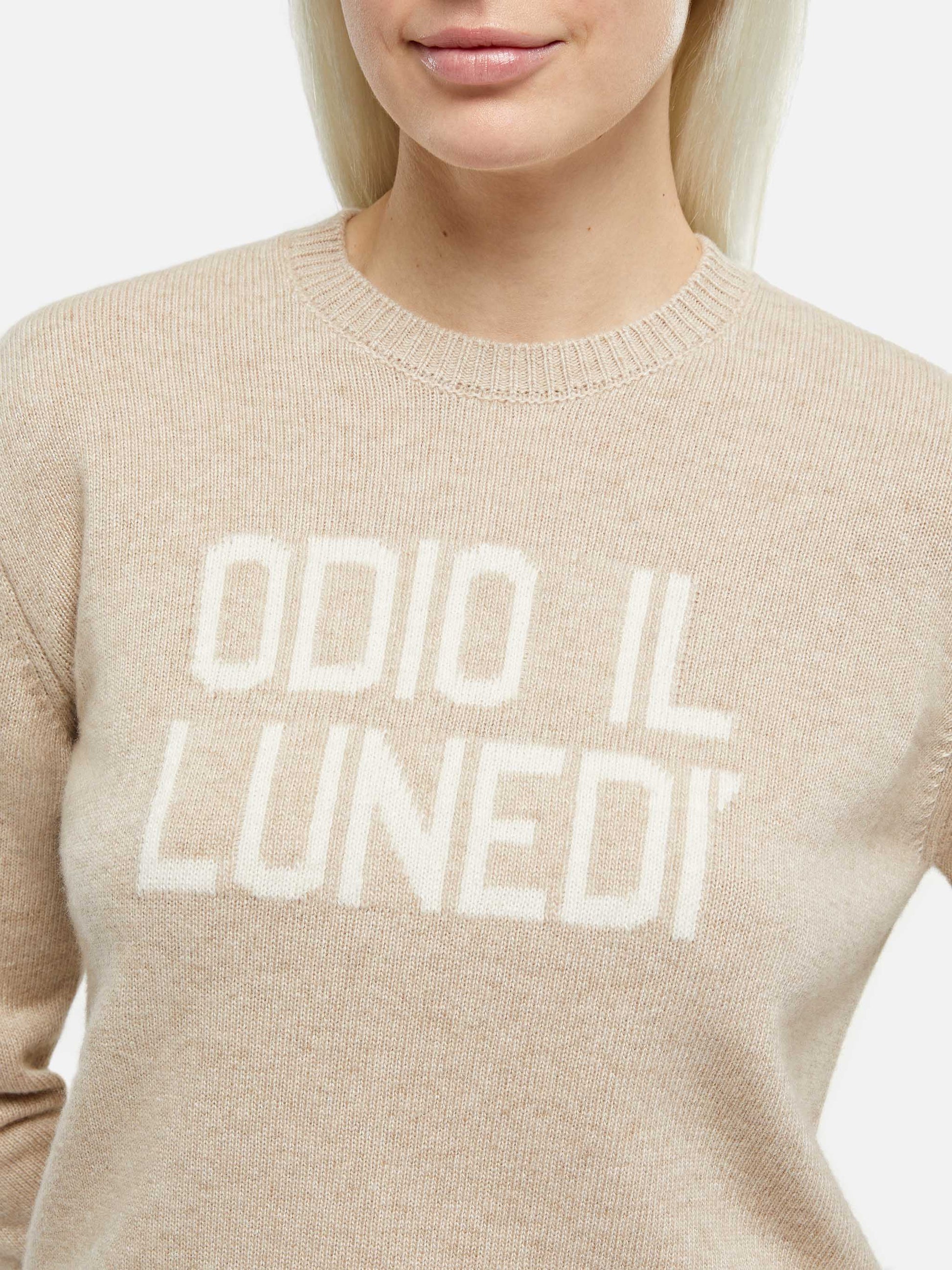 Maglione da donna beige New Queen con stampa Odio il Lunedì