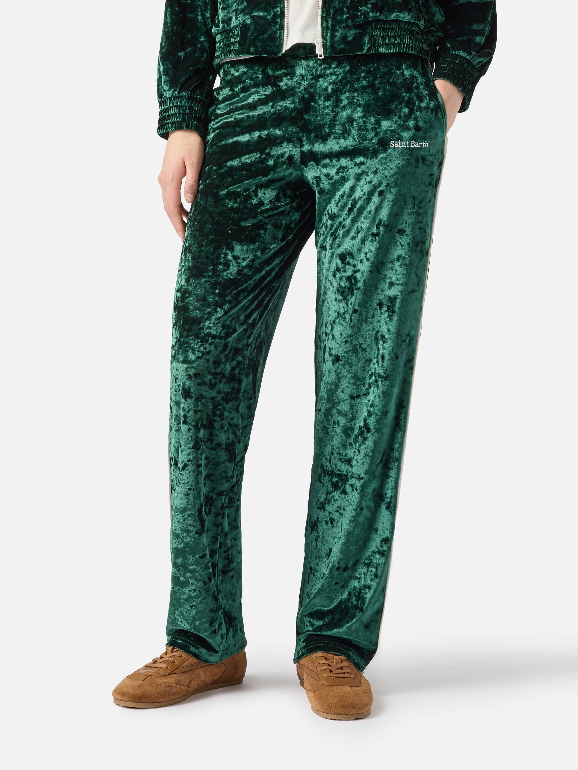 Pantaloni da donna in ciniglia verde Yvonne