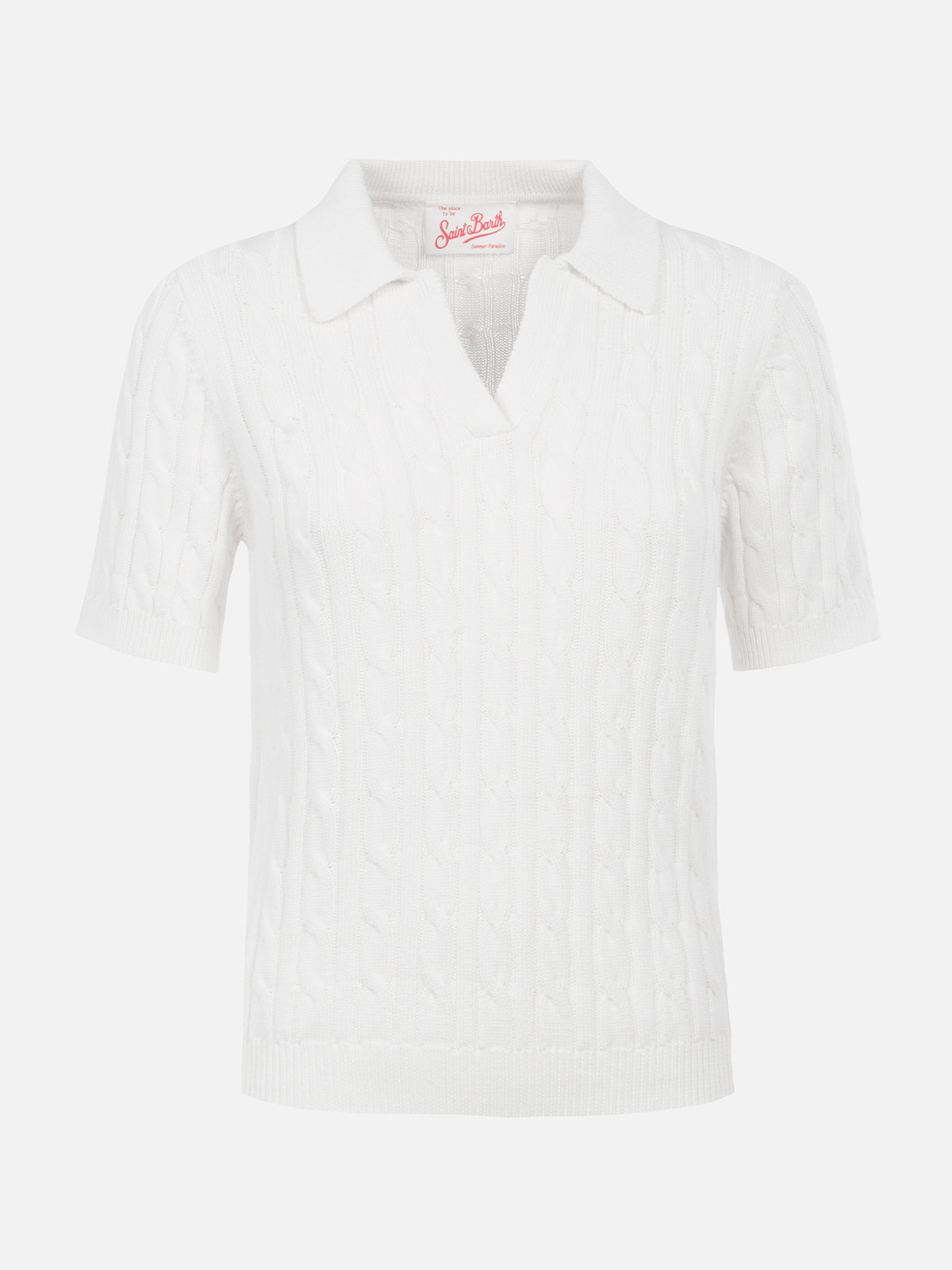 Maglia polo da donna off-white con lavorazione a trecce Caddy