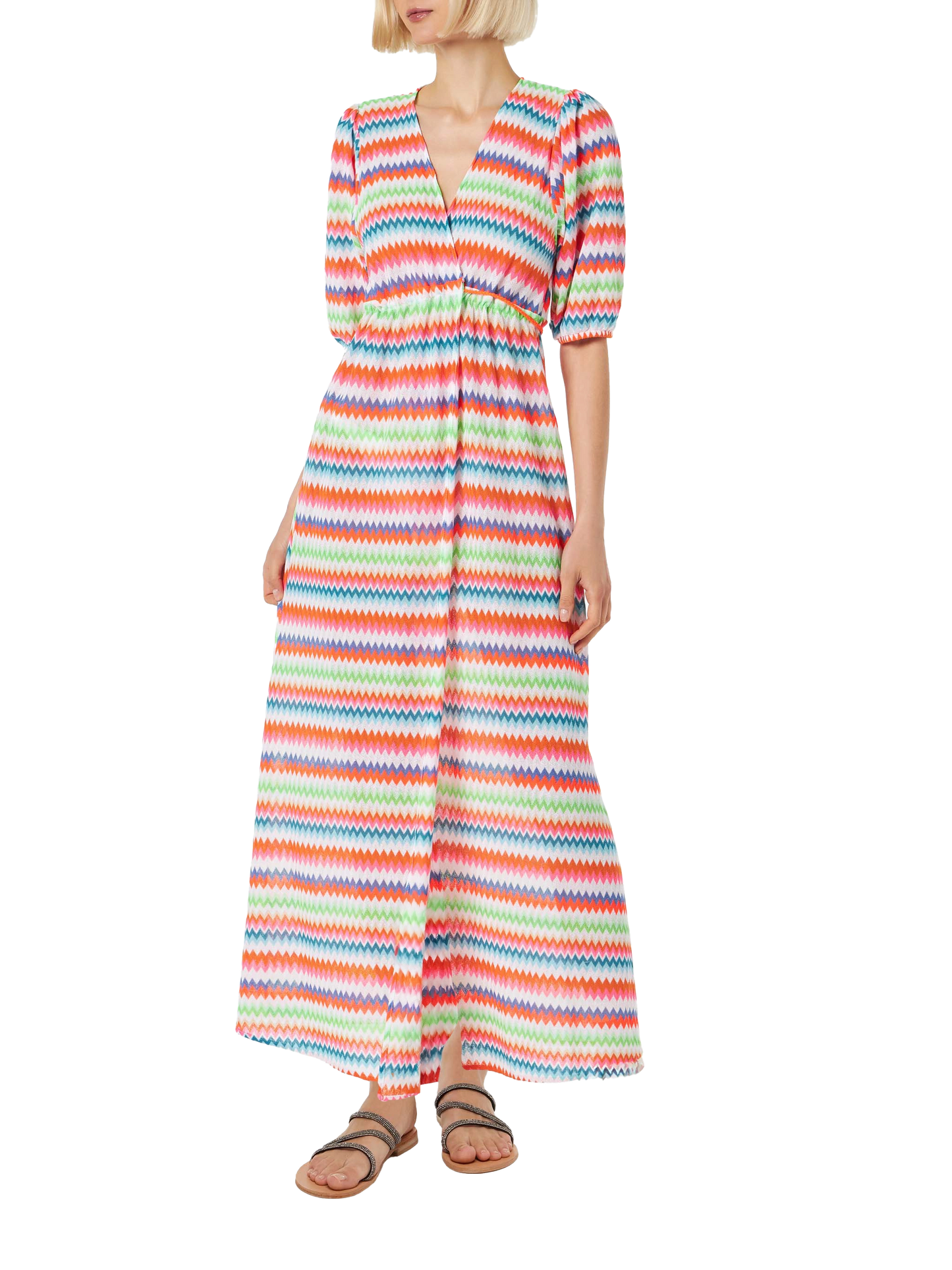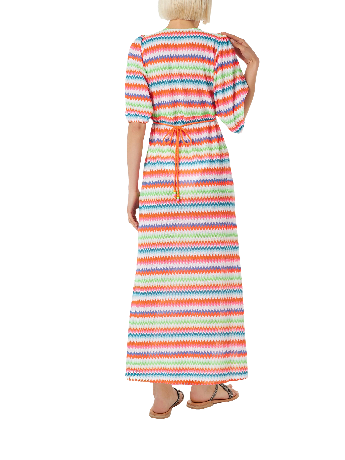Chevron raschel knit long beach dress Bliss with striped pattern