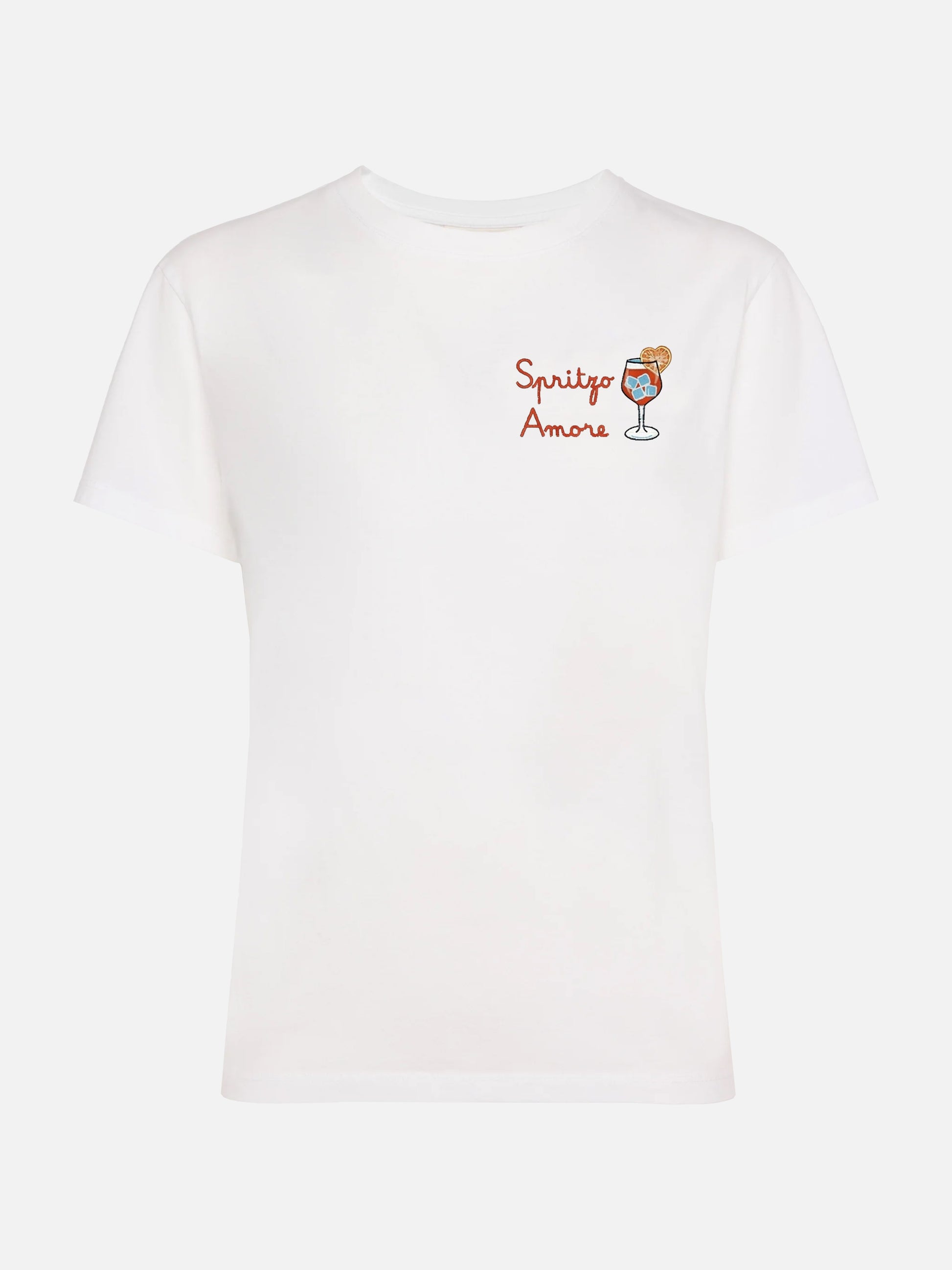 Emilie white cotton T-shirt with Spritzo Amore embroidery