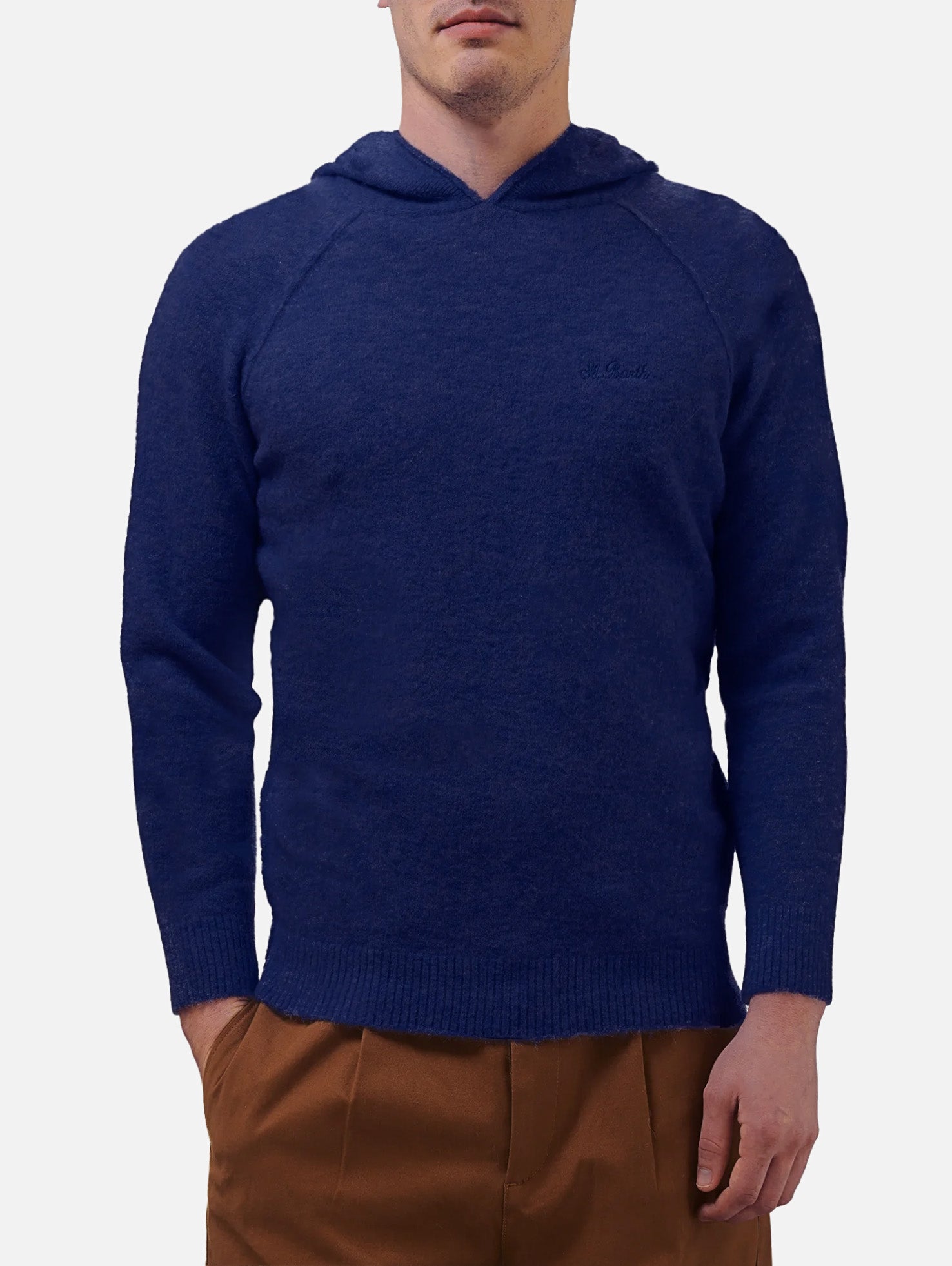 Man navy blue stretch alpaca hooded sweater Piccadilly