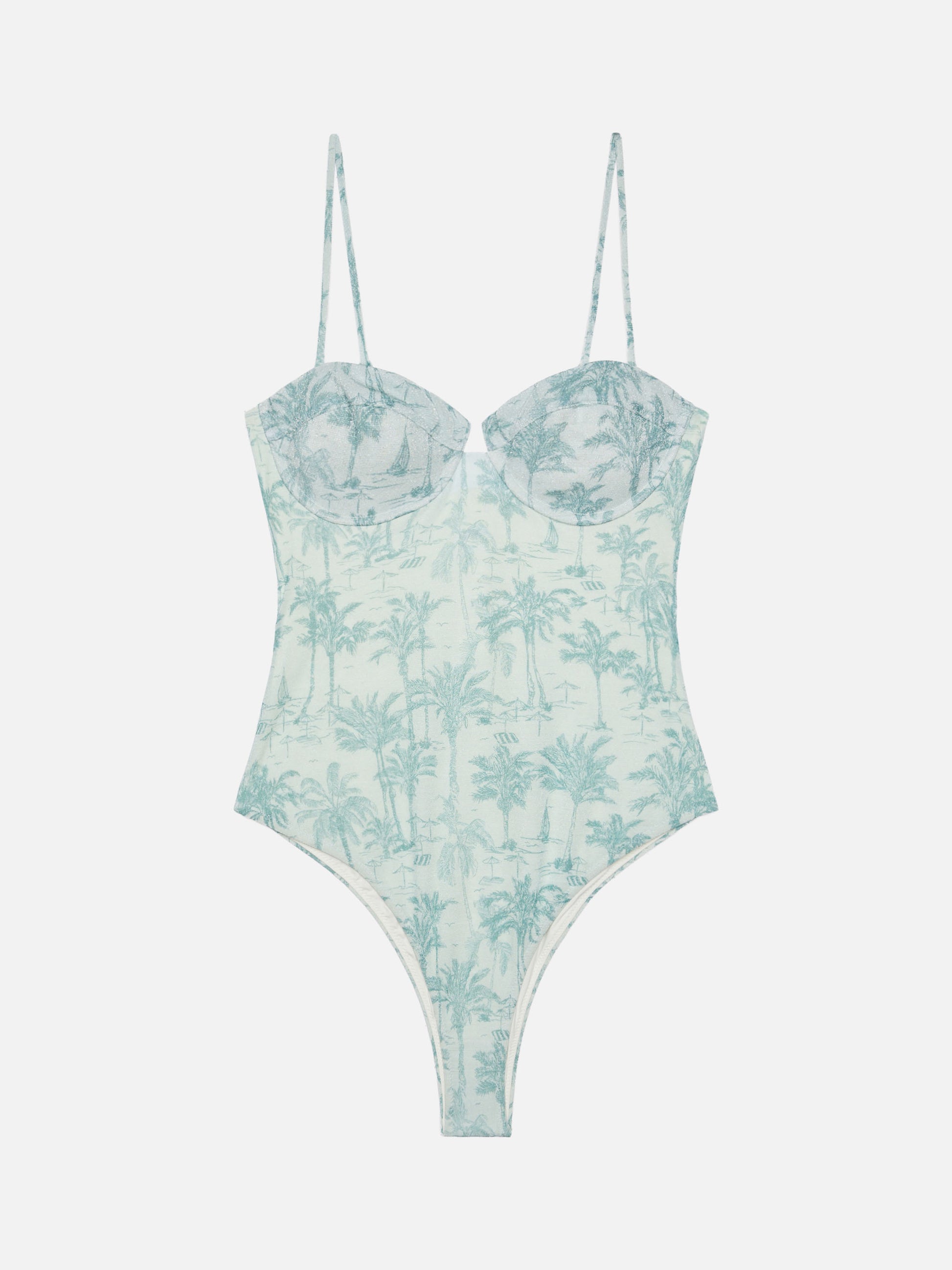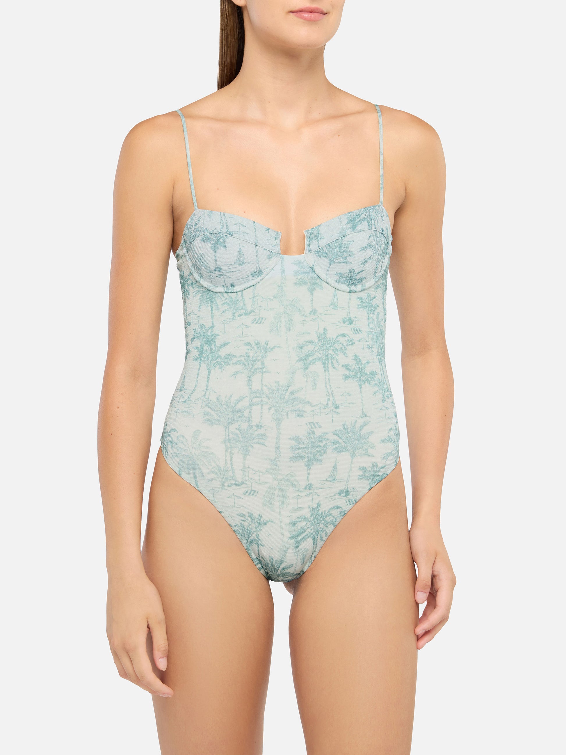 Medea lurex underwired one-piece swimsuit with toile de jouy print