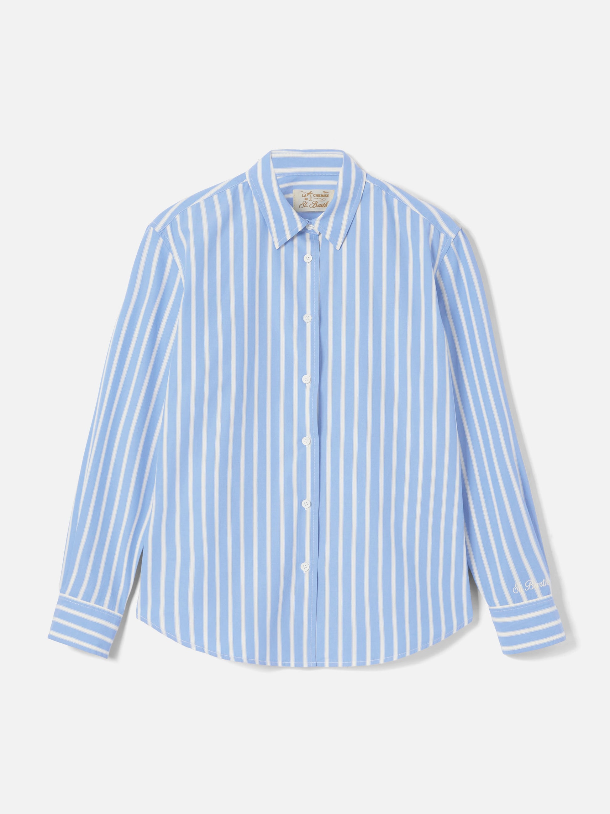 Meredith cotton shirt with light blue stripes and Saint Barth embroidery