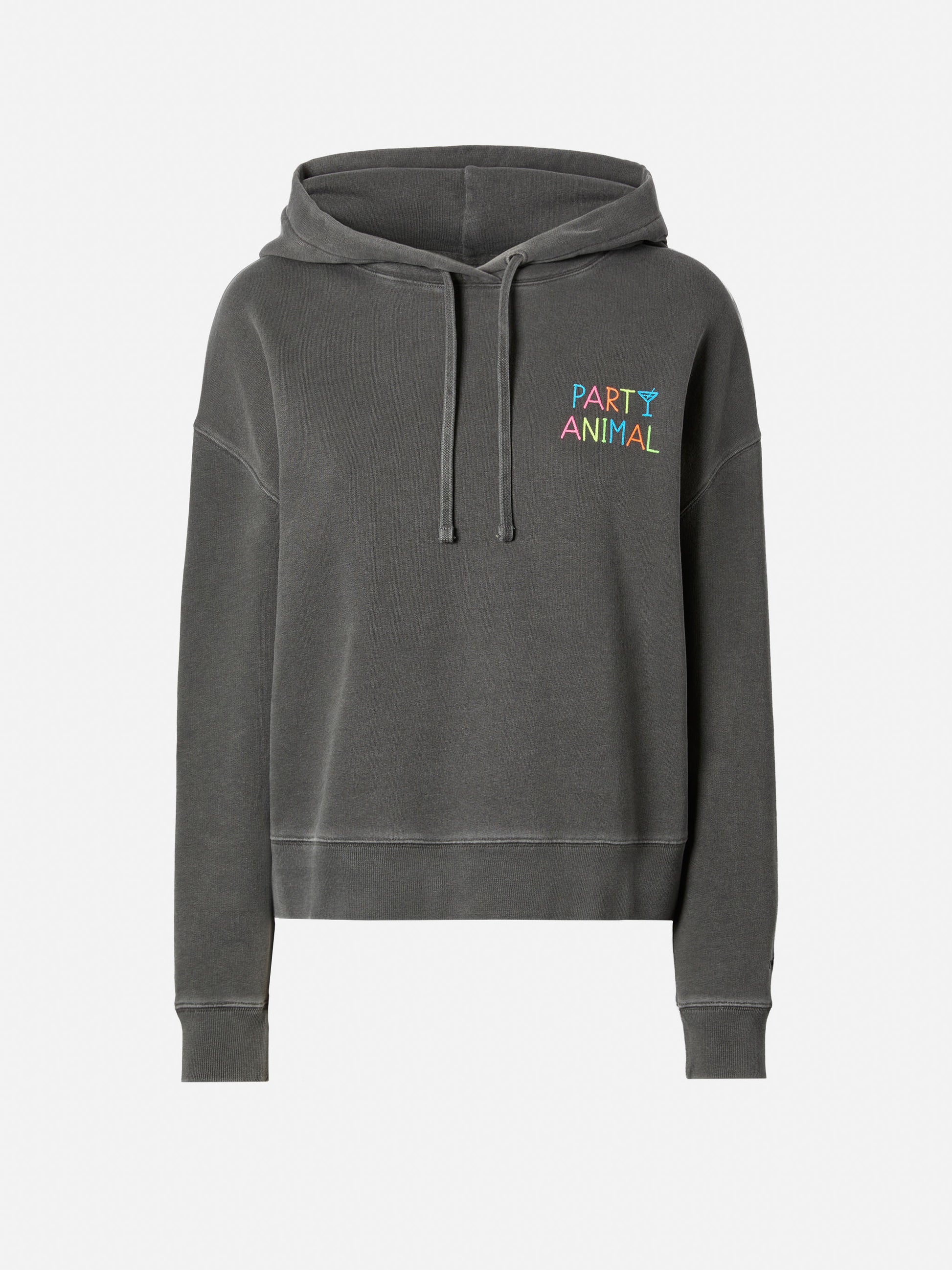 Sporty-chic at first glance: Mindy sweatshirt mixes embroidered graphic and brushed fleece for relaxed elegance.