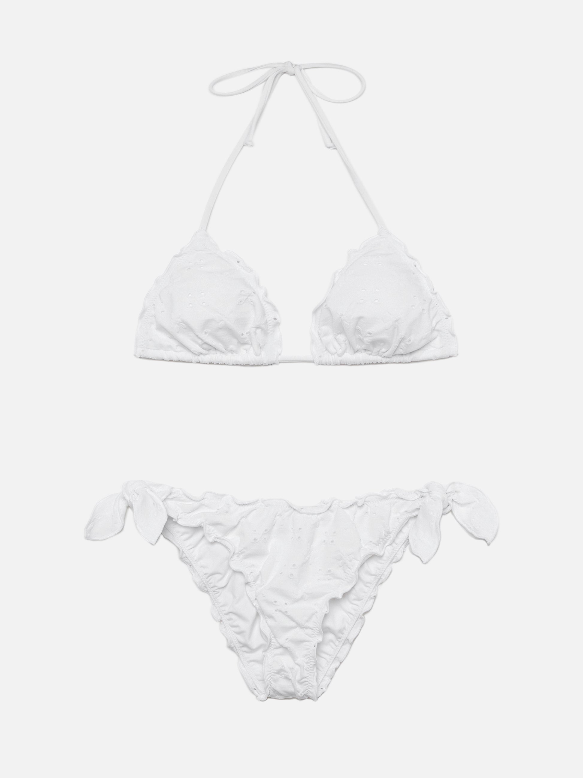 Classic triangle bikini Sagittarius Moon in white Sangallo lace