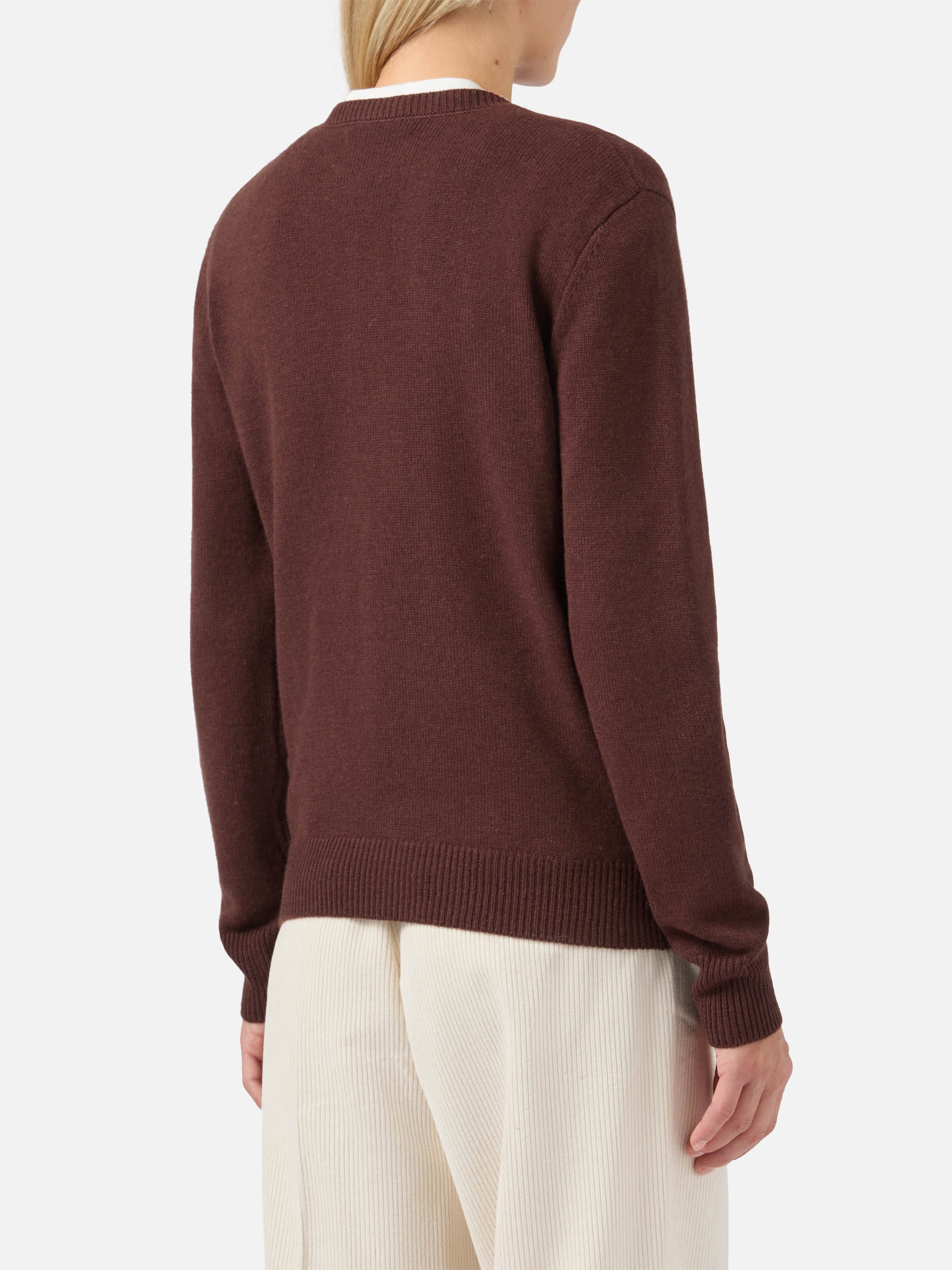 New Queen cashmere-blend sweater in brown with Snoopy jacquard and embroidery | PEANUTS SPECIAL EDITION