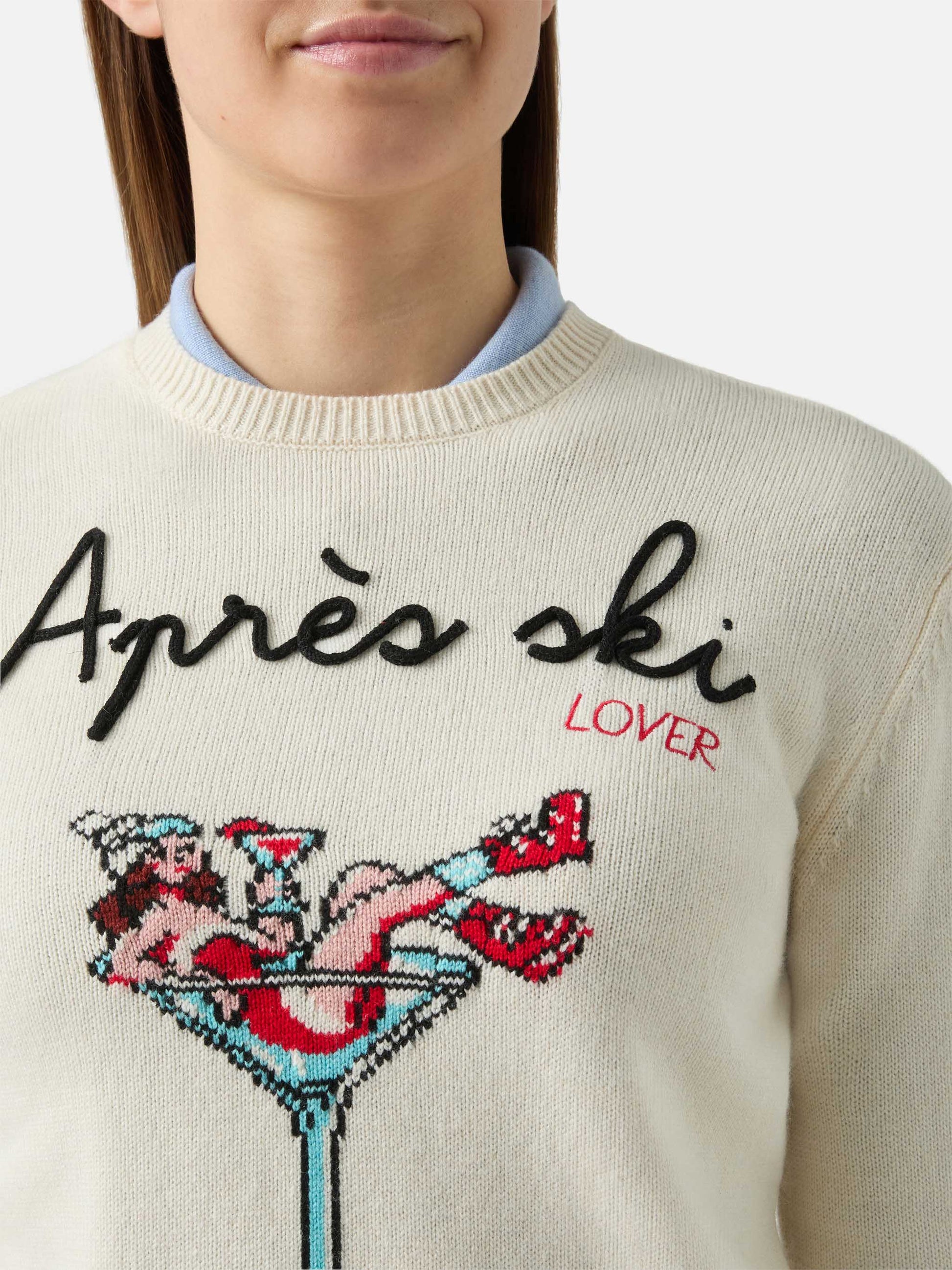 New Queen crewneck with Apres ski embroidery and jacquard