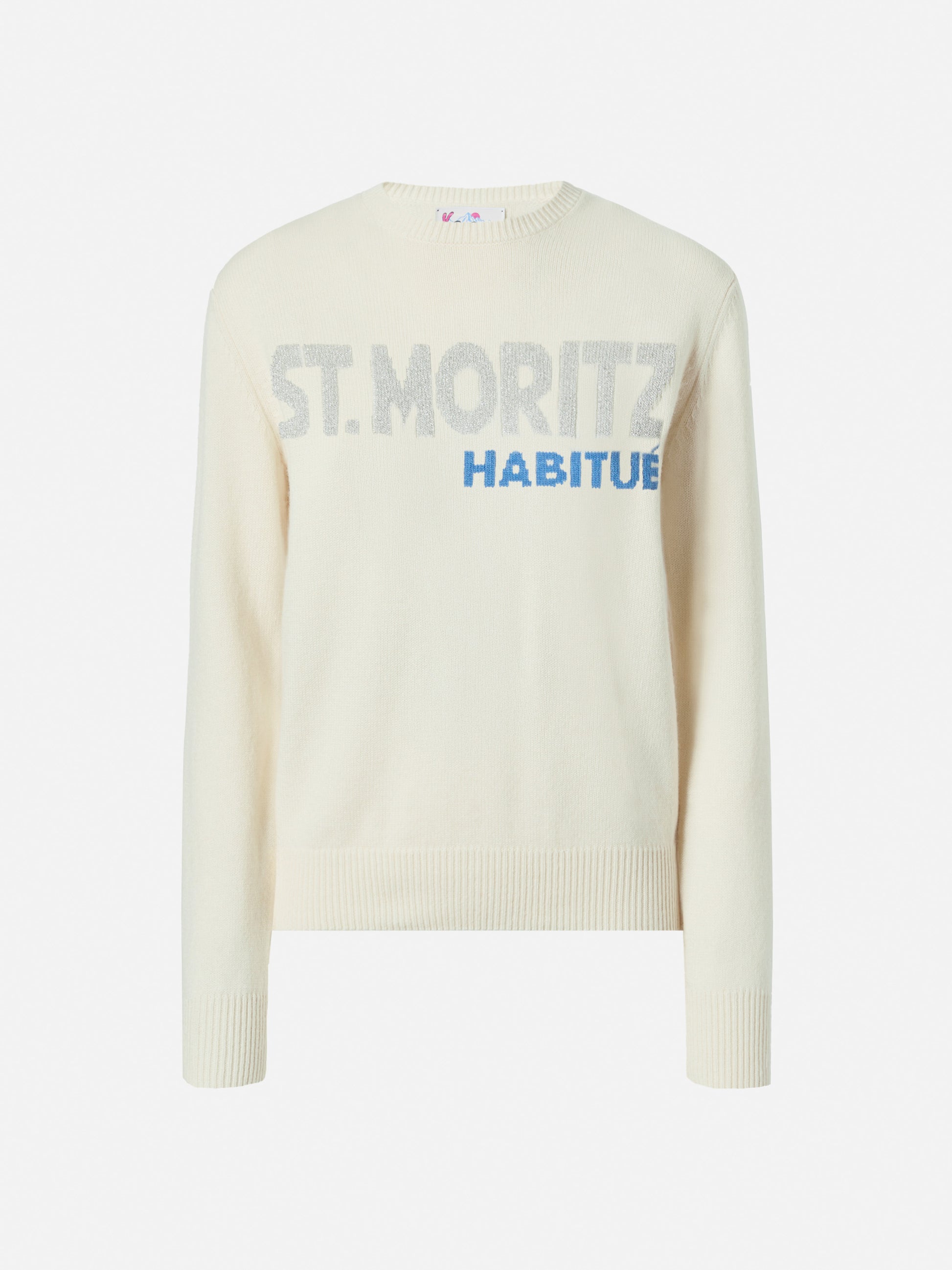 New Queen crewneck with St. Moritz habituè lurex jacquard