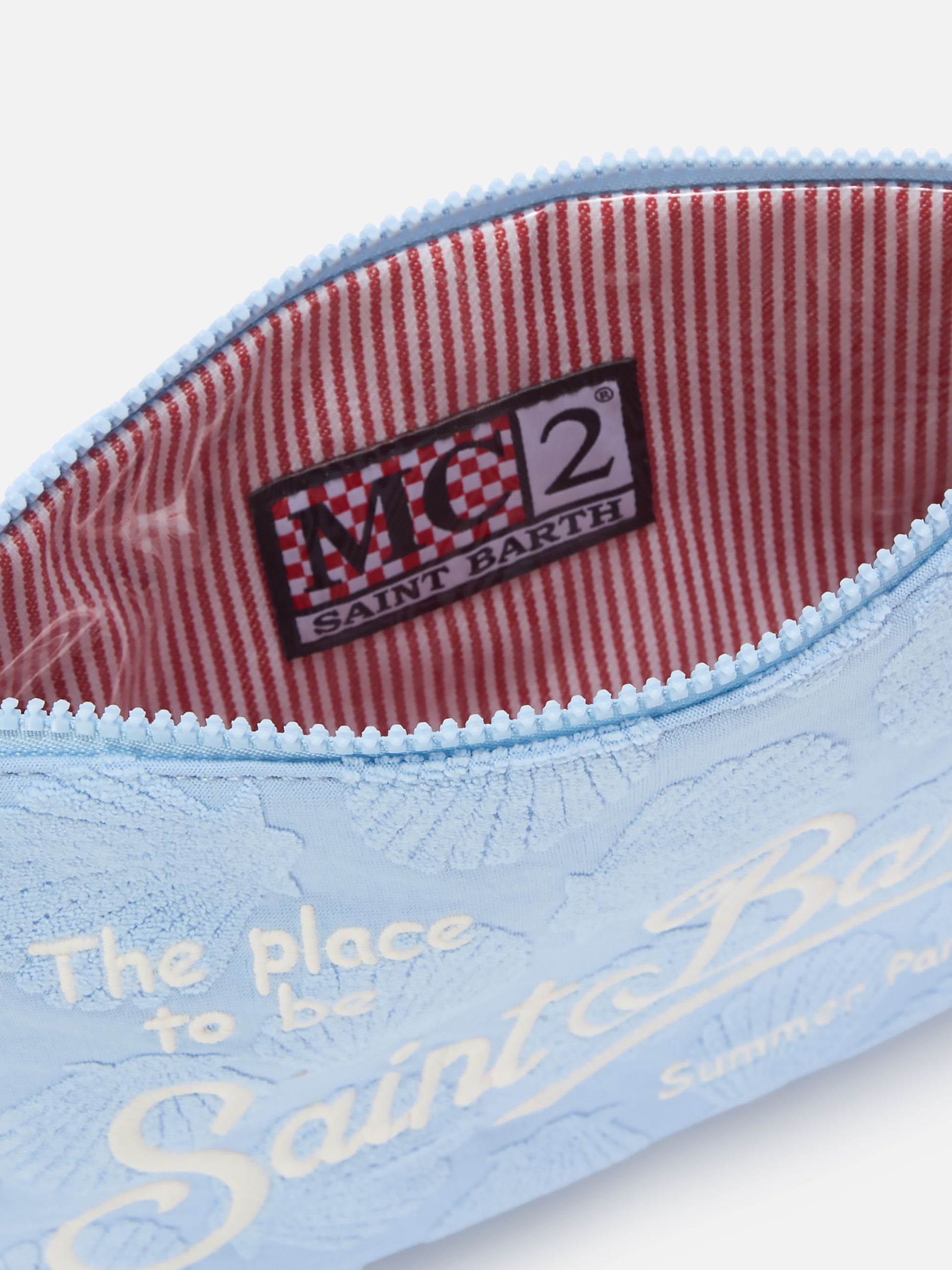 Parisienne Sponge terry-effect pouch with embossed shell pattern and removable strap