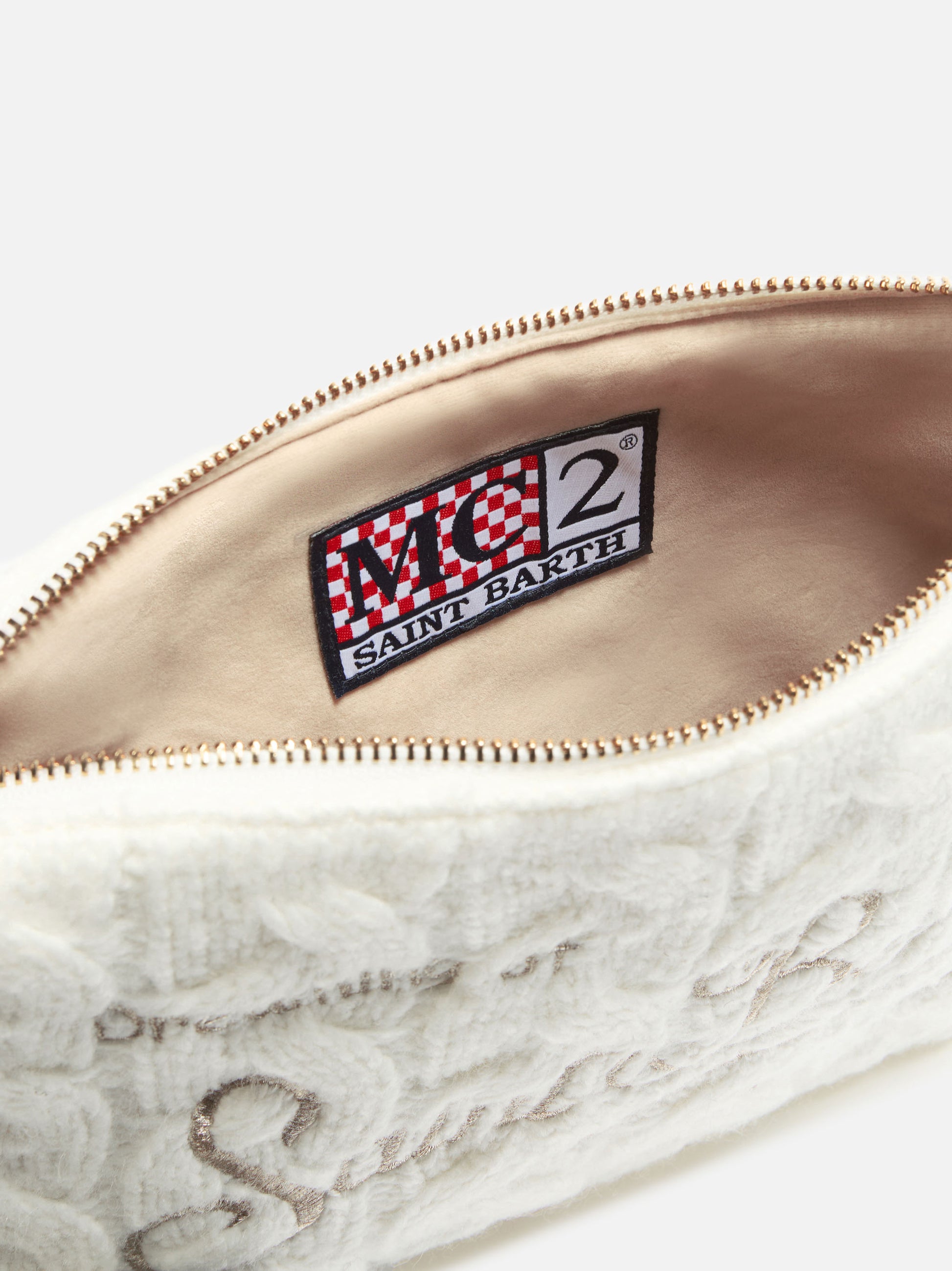 New Queen cashmere-blend sweater in white with Ma cherie embroidery