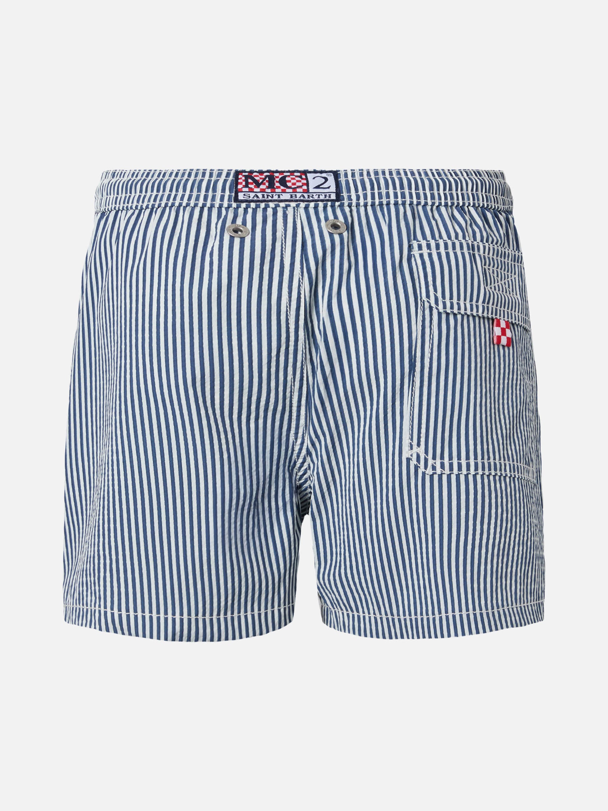 Patmos Jr seersucker blue striped mid-length swim shorts