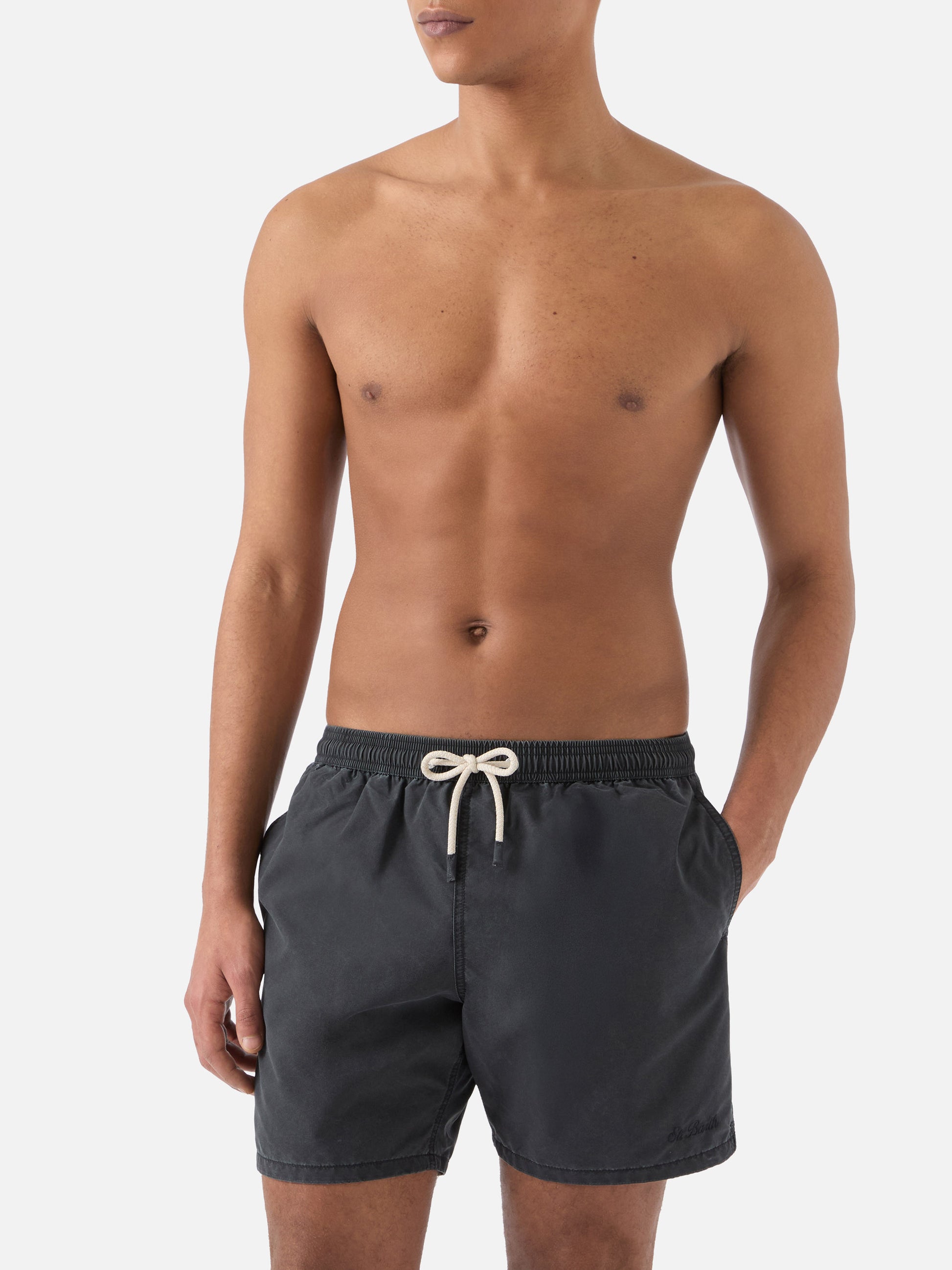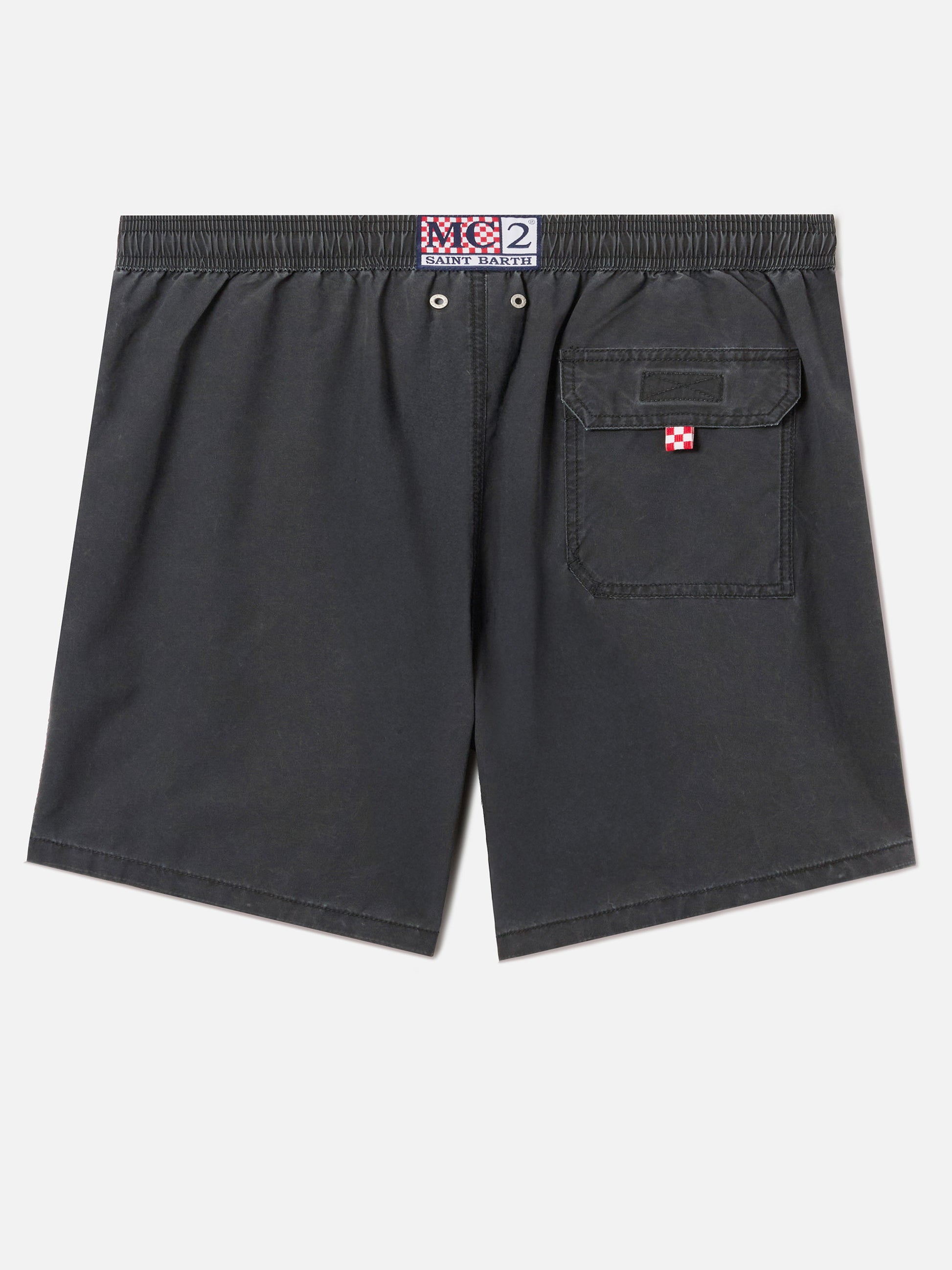 https://it.mc2saintbarth.com/products/patmos-swim-shorts-in-black-with-used-effect-and-logo-embroidery10775377969498Patmos swim shorts in black with used effect and logo embroidery169.00https:files/UID_PATM00300510L-MAN-SWIMSHORT-BLACK-MC2-MC2_1.jpghttps:files/UID_PATM00300510L-MAN-SWIMSHORT-BLACK-MC2-MC2_1.jpgEUROutOfStockSWIMSHORT650948215130All Products - Only Man649134276954AVADA - Best Sellers288251543736Man - View All Swimwear279983751352Man solid colors swim shorts628483424602Patmos man swim shorts603371077978Swimshorts All626723225946The Quick Dry Fabric - Man654689960282UpSelling_Man_SwimshortsThe Patmos swim shorts are crafted from lightweight breathable fabric designed to ensure comfort and freedom of movement. A special coating treatment creates a slightly faded finish that evolves with wear, giving the garment a distinctive used effect. The elasticated waistband with drawstring allows for an adjustable fit, while functional details such as side pockets, an internal small pocket and a back pocket with flap and velcro closure with water drainage add practicality to the design. The antibacterial stretch inner mesh ensures comfort and support. The mid length cut and regular fit complete the style.
