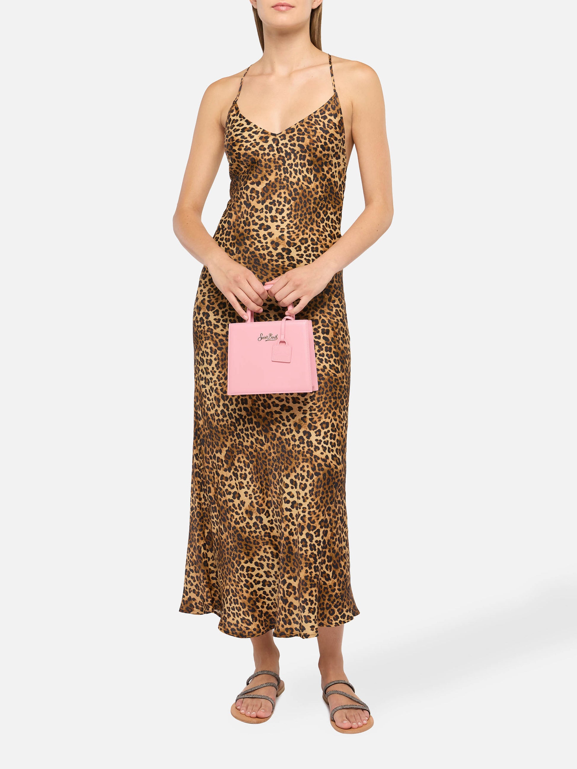 Structured Shop mini bag in pink smooth leather with metal tag