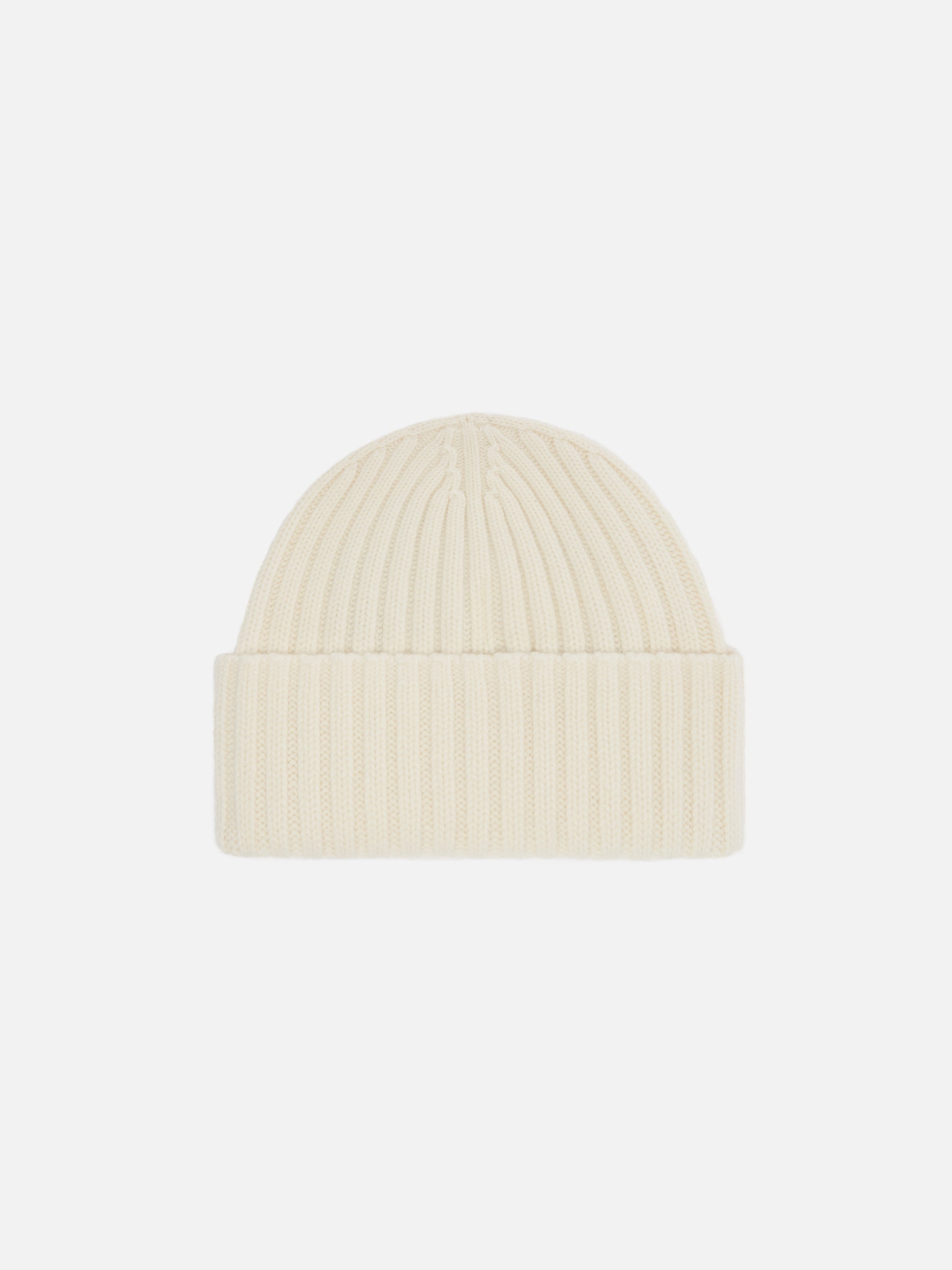 Wengen in white wool is clean and bright: a cosy beanie that pairs effortlessly with classic coats and technical outerwear.