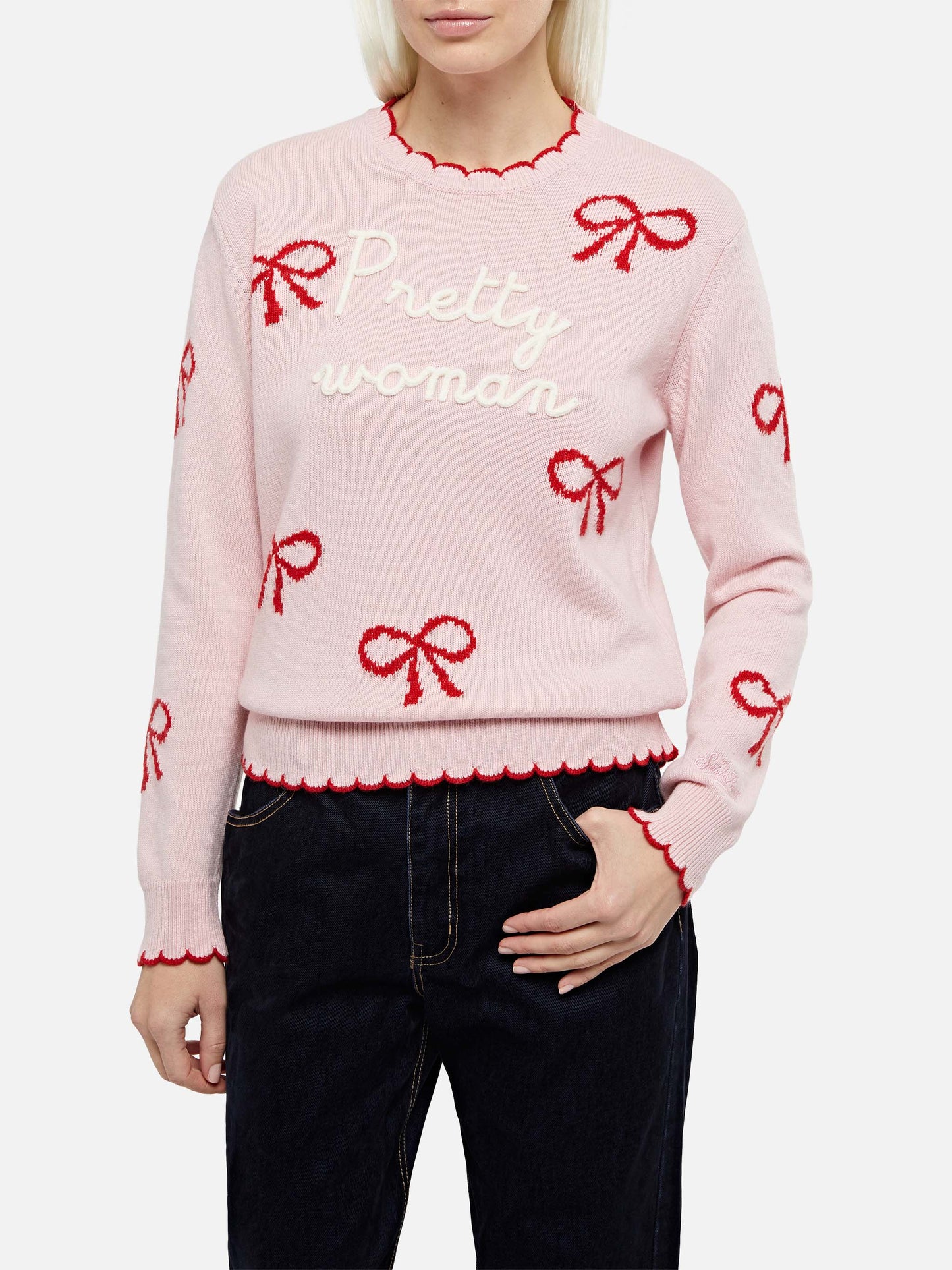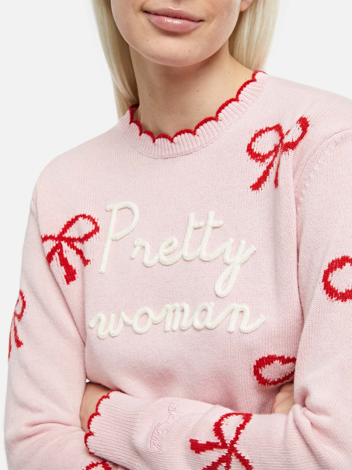 Woman pink sweater New Queen with Pretty Woman embroidery and ribbons print
