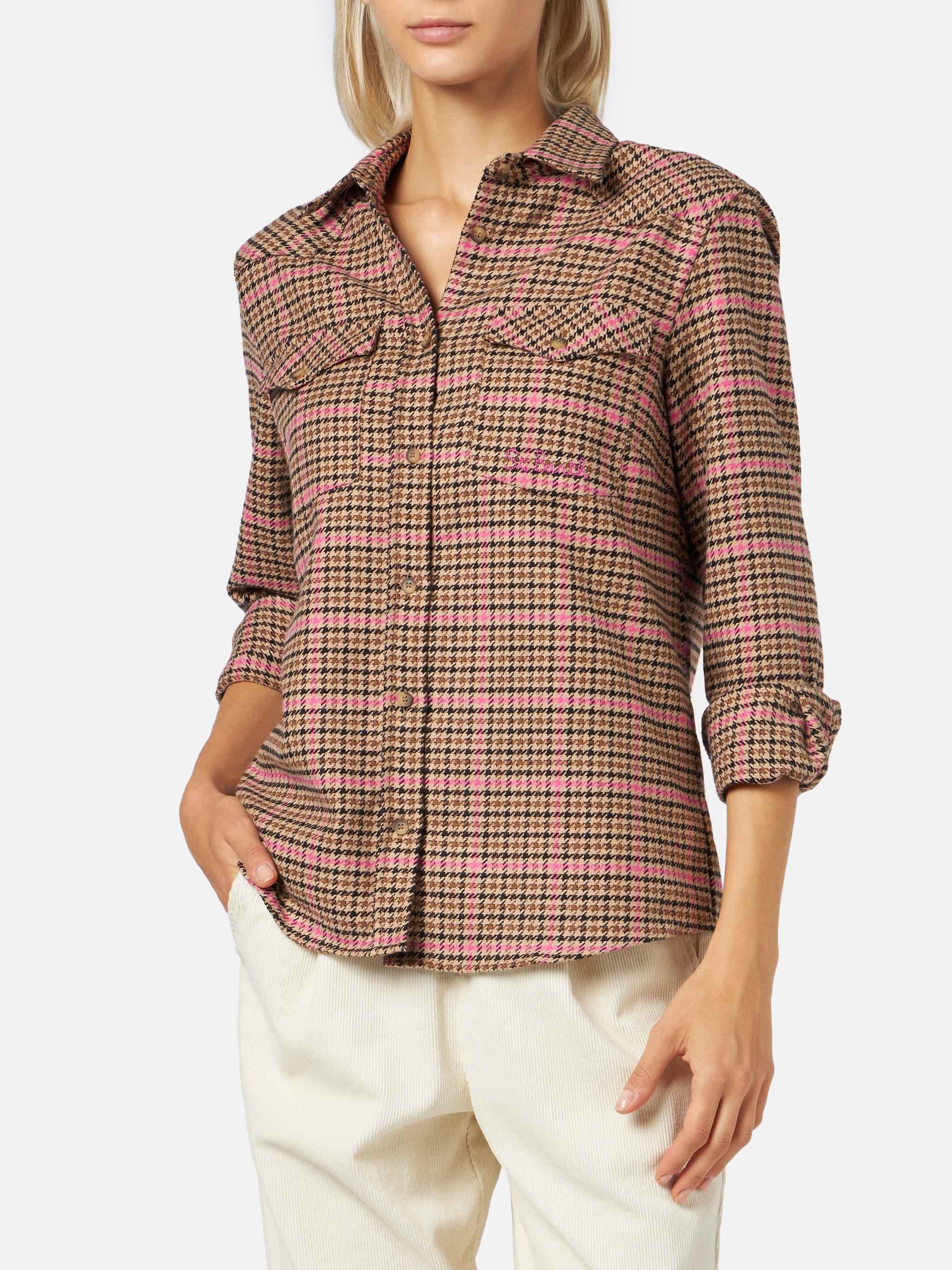 Woman overshirt with pied de poule print